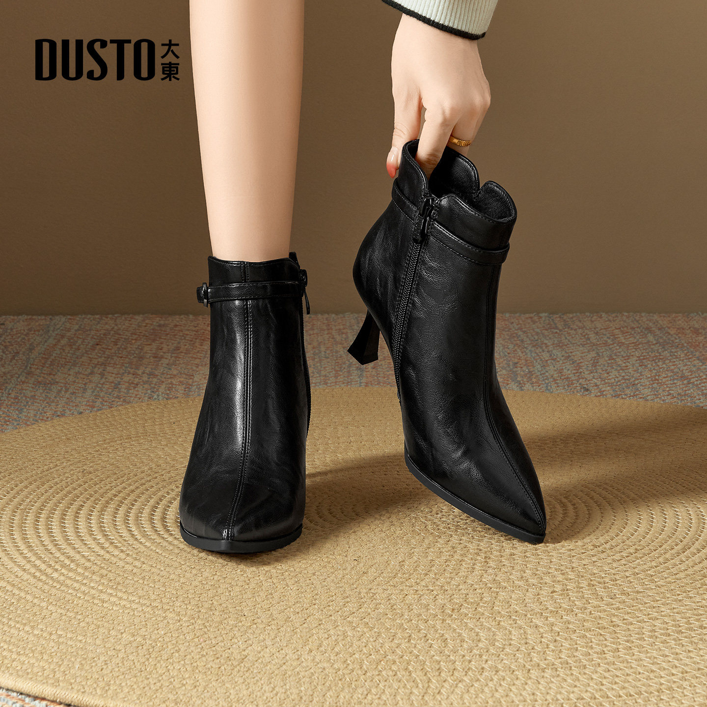 大东女鞋时装靴2025冬季新款时尚尖头通勤女短靴细跟职业单里女靴