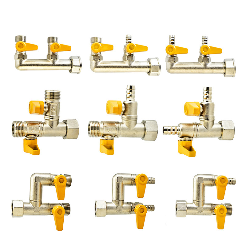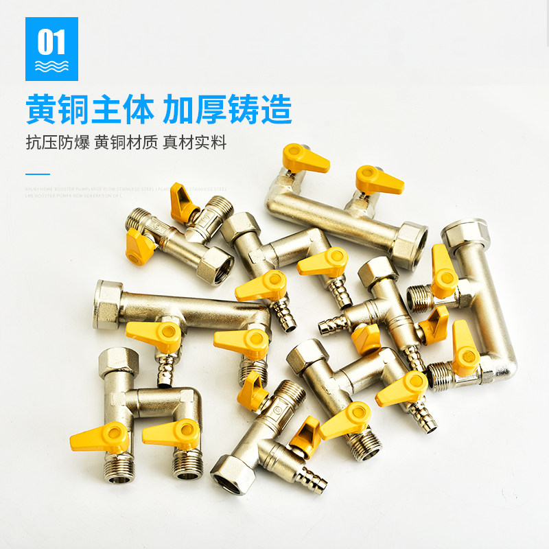 燃气表专用F型M30三通阀门全铜天然气家用一分二煤气带开关配件头