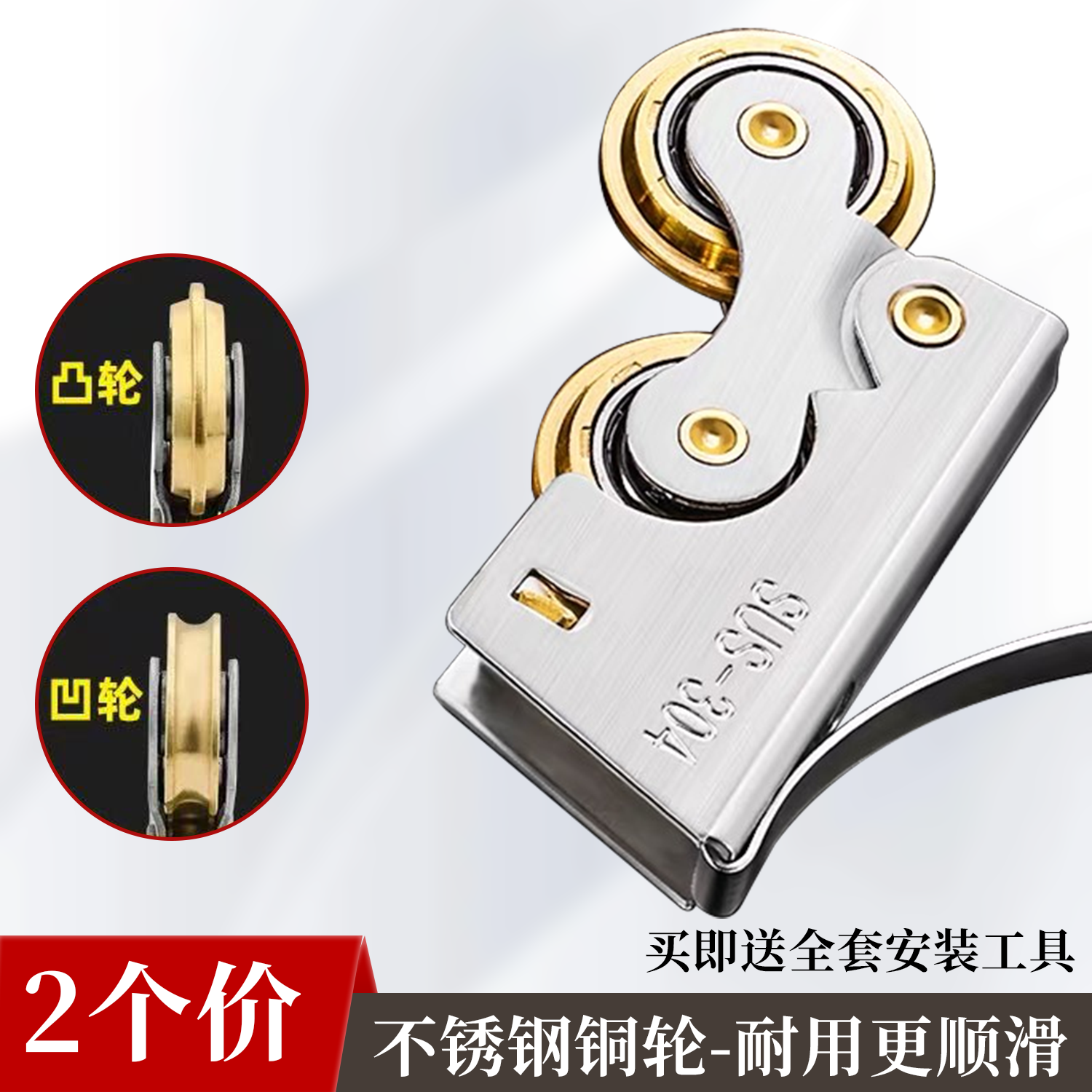 304不锈钢推拉门衣柜滑轮下轮移门厨房轮子地轨道浴室玻璃门滚轮