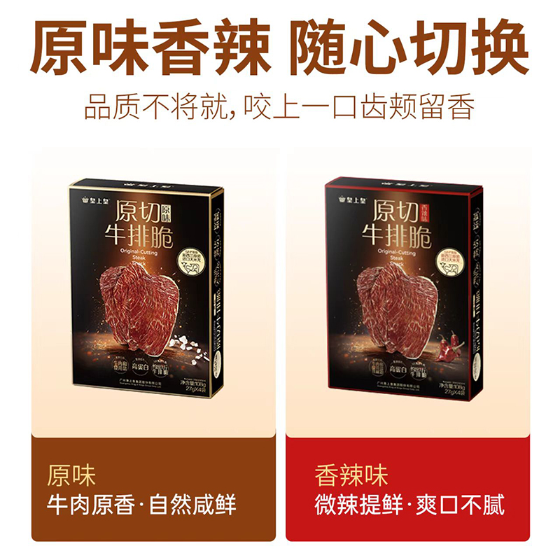 皇上皇原切牛排脆盒装原味牛肉干脆片休闲即食零食健身代餐