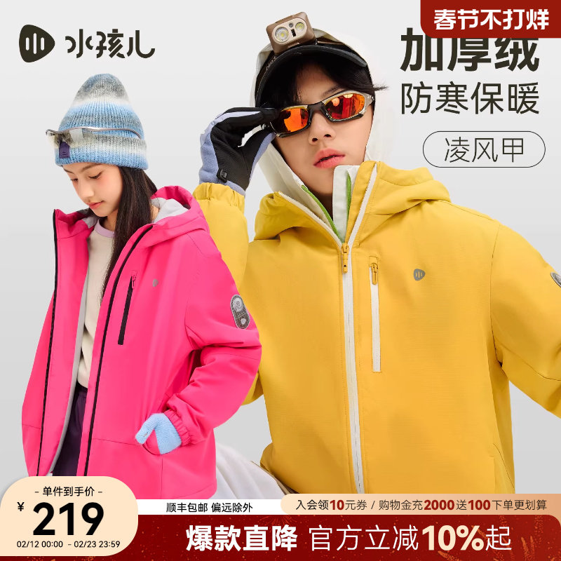 水孩儿童装外套加绒2026新款冬装男女大童厚风衣三防红色上衣