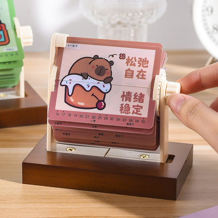 卡皮巴拉迷你机械日历2026年手摇可爱卡通水豚创意小台历文艺熊猫复古轻奢翻页桌面小摆件定制高级感生日礼物