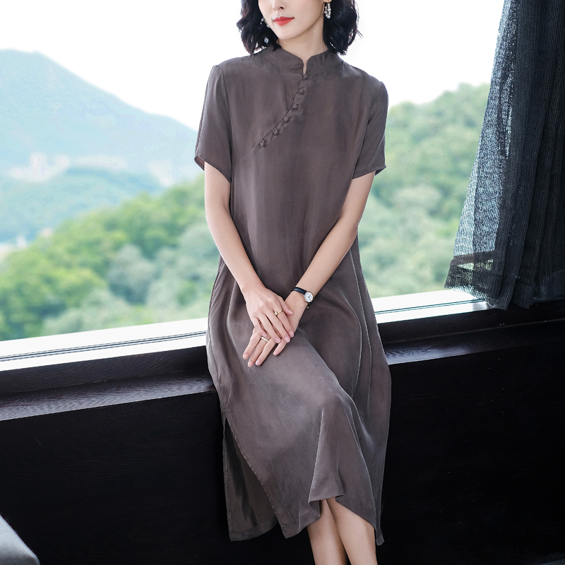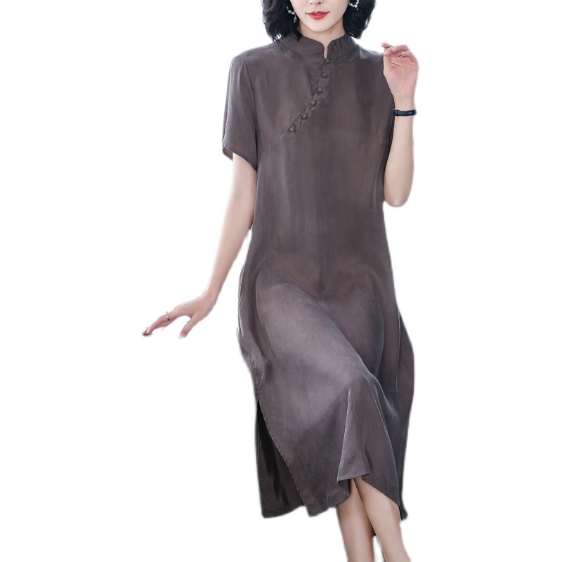 重磅铜氨丝连衣裙高端气质2025新款夏遮肚旗袍改良新中式女装大码