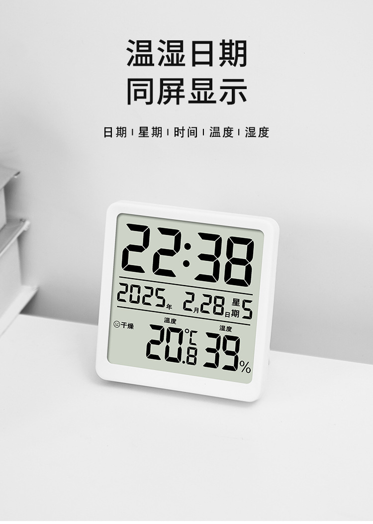 新款超薄温湿度计时钟室内家用多功能闹钟电子式温度表可磁吸
