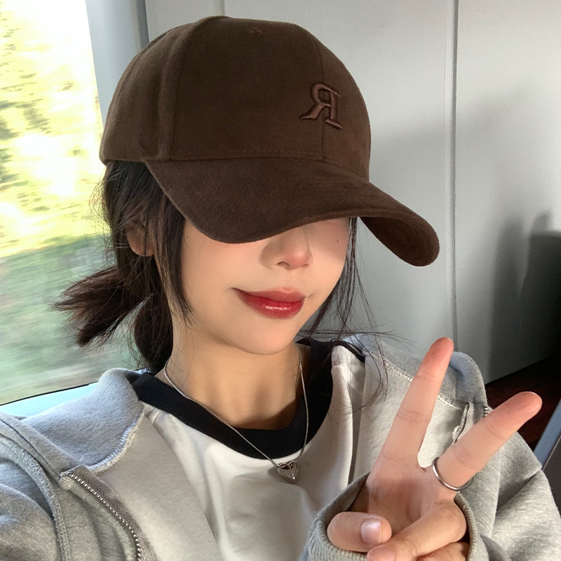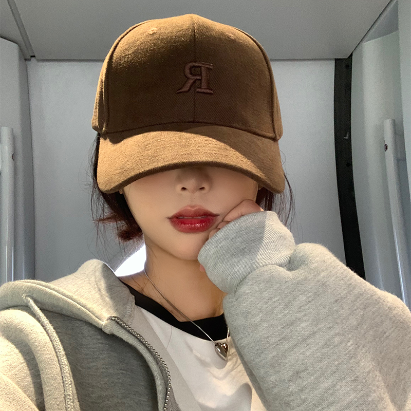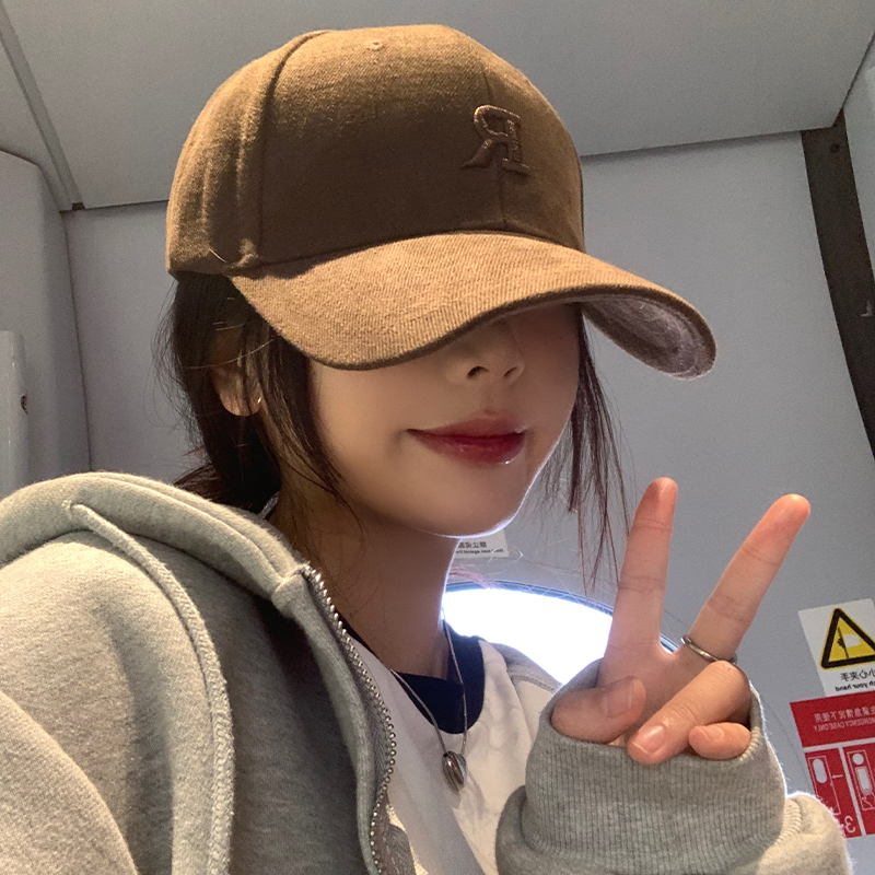 美拉德棒球帽女咖色字母宽帽檐显脸小鸭舌帽硬顶大头围深顶帽子男