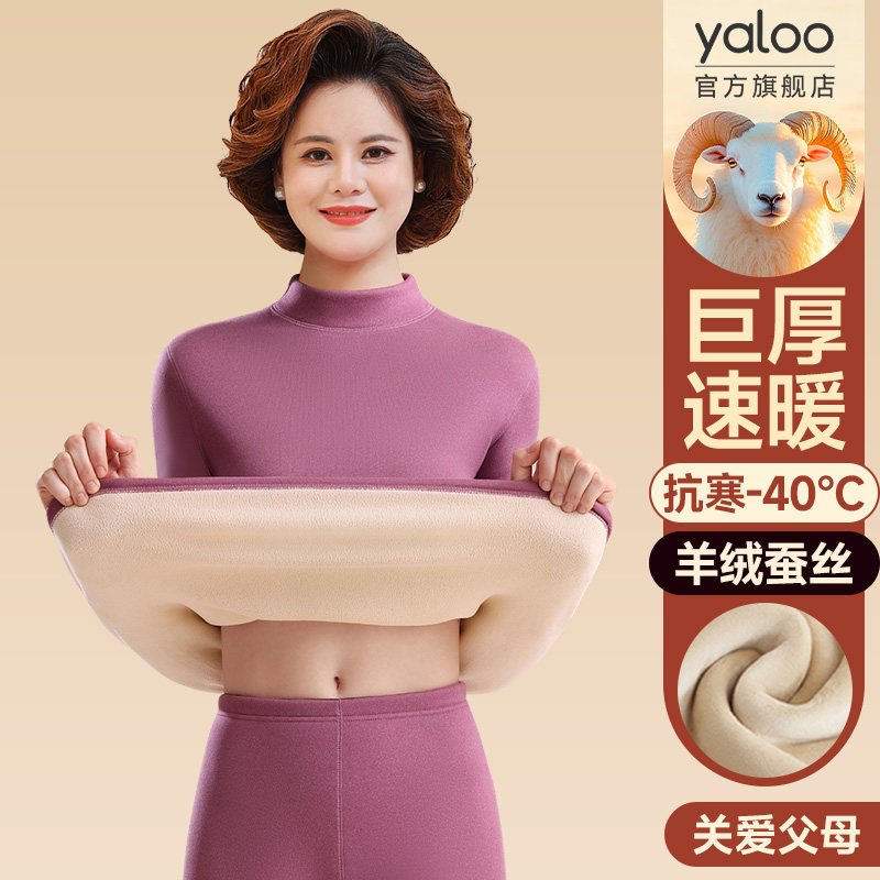 雅鹿保暖内衣女士套装加厚加绒德中老年人妈妈秋衣秋裤中高领冬季