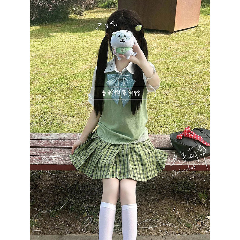 小青梅/日系JK制服针织衫2025夏季新品青苹果绿马甲背心百搭格裙
