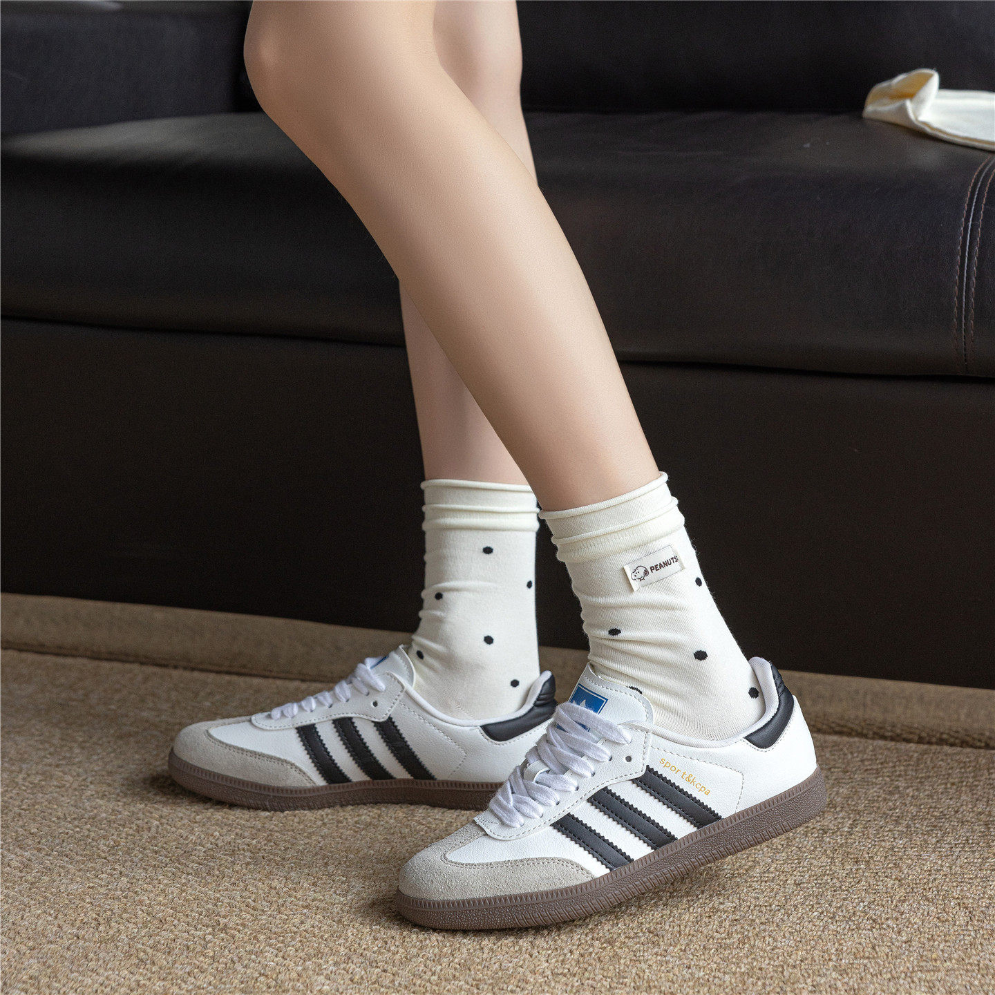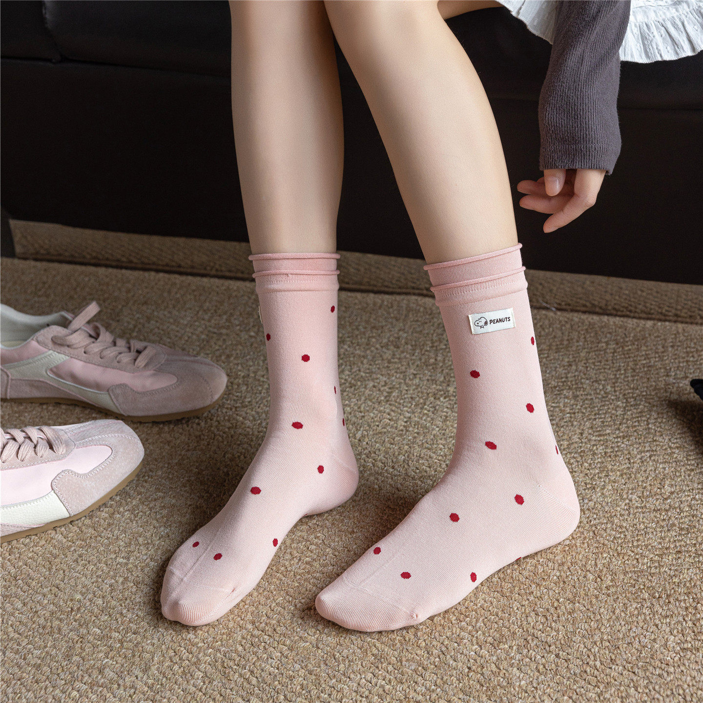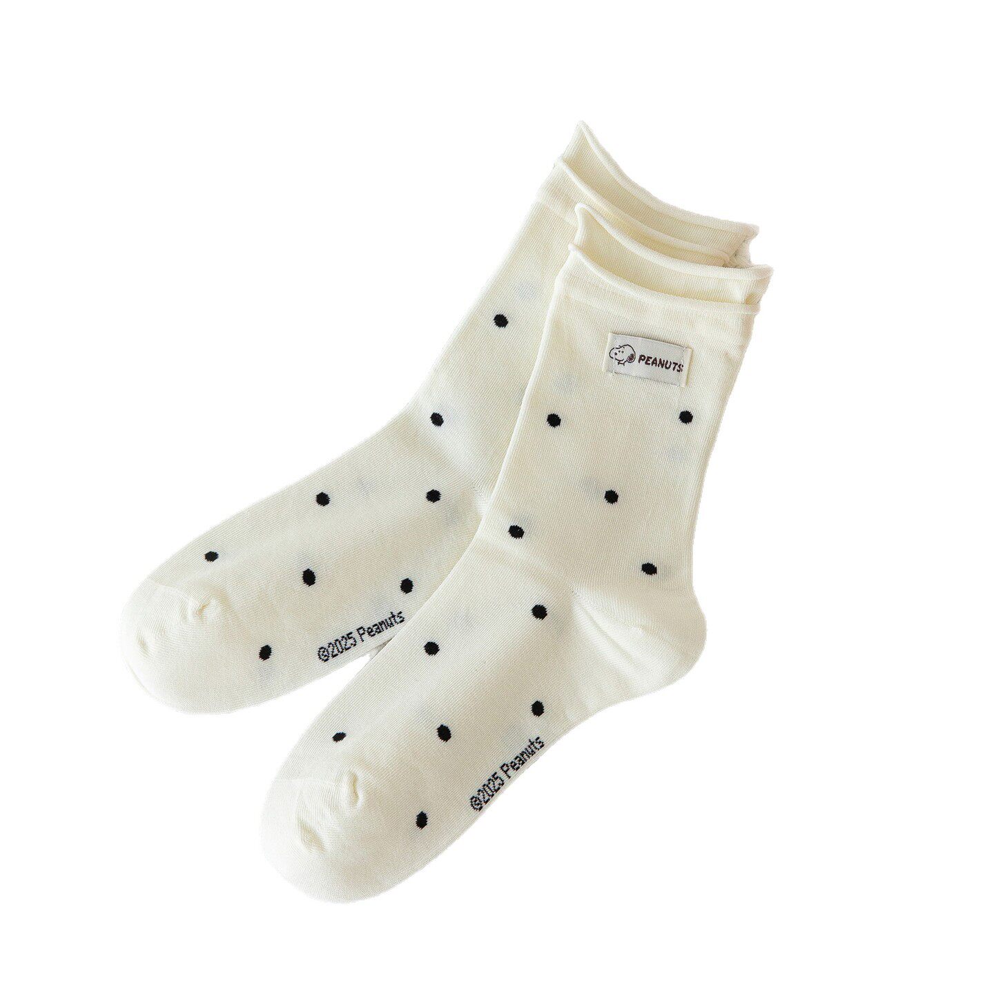 Caramella&史努比联名袜子女 卷边双罗口中筒袜 日系小圆点长棉袜