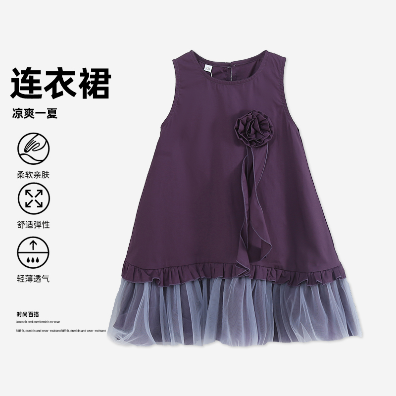 女童吊带连衣裙夏季新款无袖公主裙纯色棉布背心裙HCB411-tylj