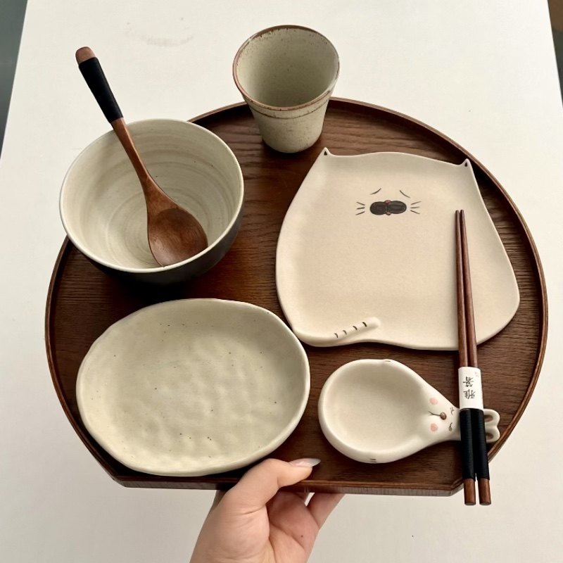 漫生活老板娘 发呆小猫 一人食餐具童趣碗碟套装可爱早餐儿童卡通