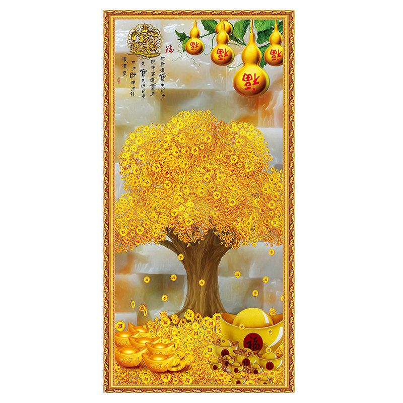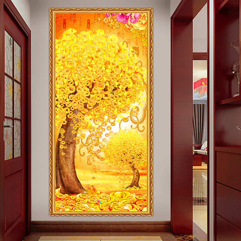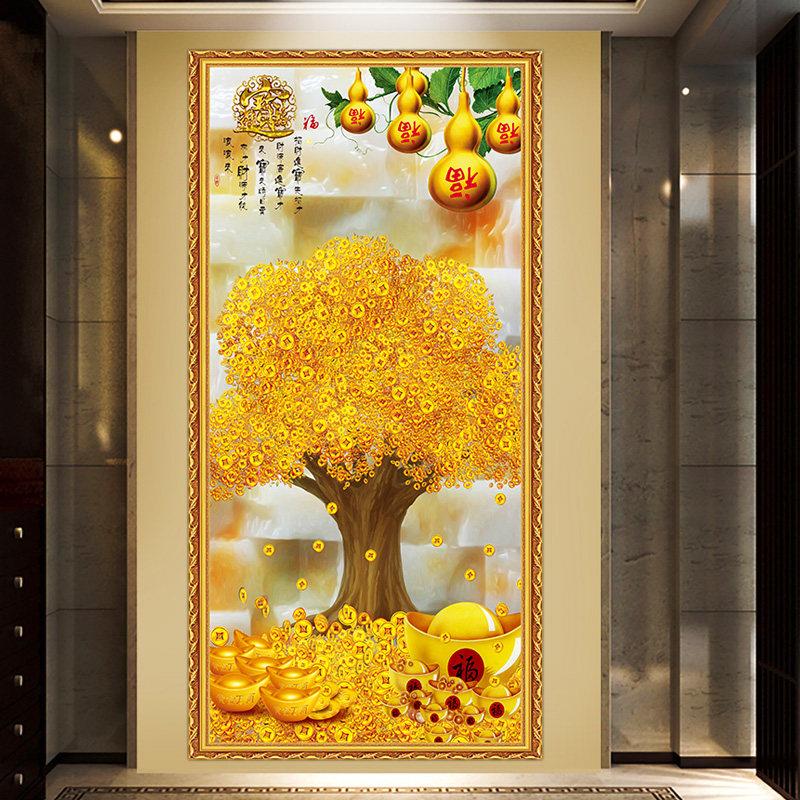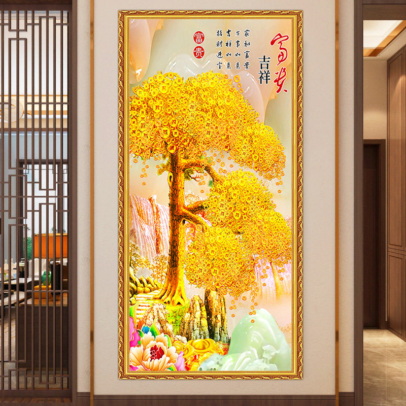 发财进宝贴画入户玄关装饰自粘竖版摇钱黄金树打印走廊过道墙壁纸