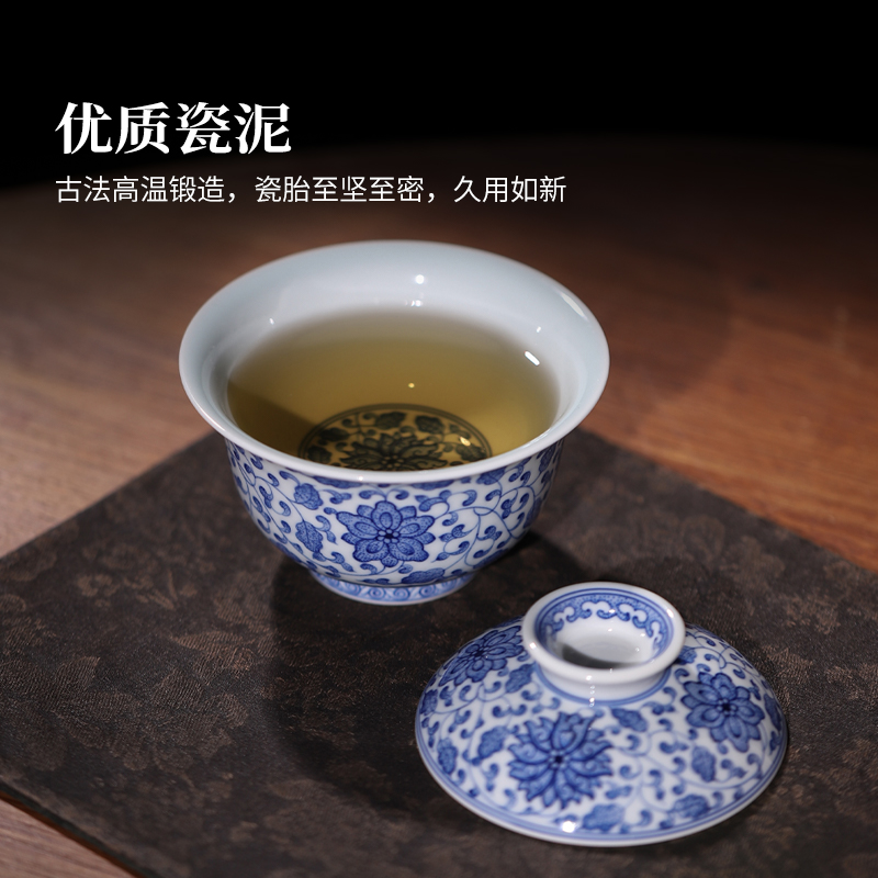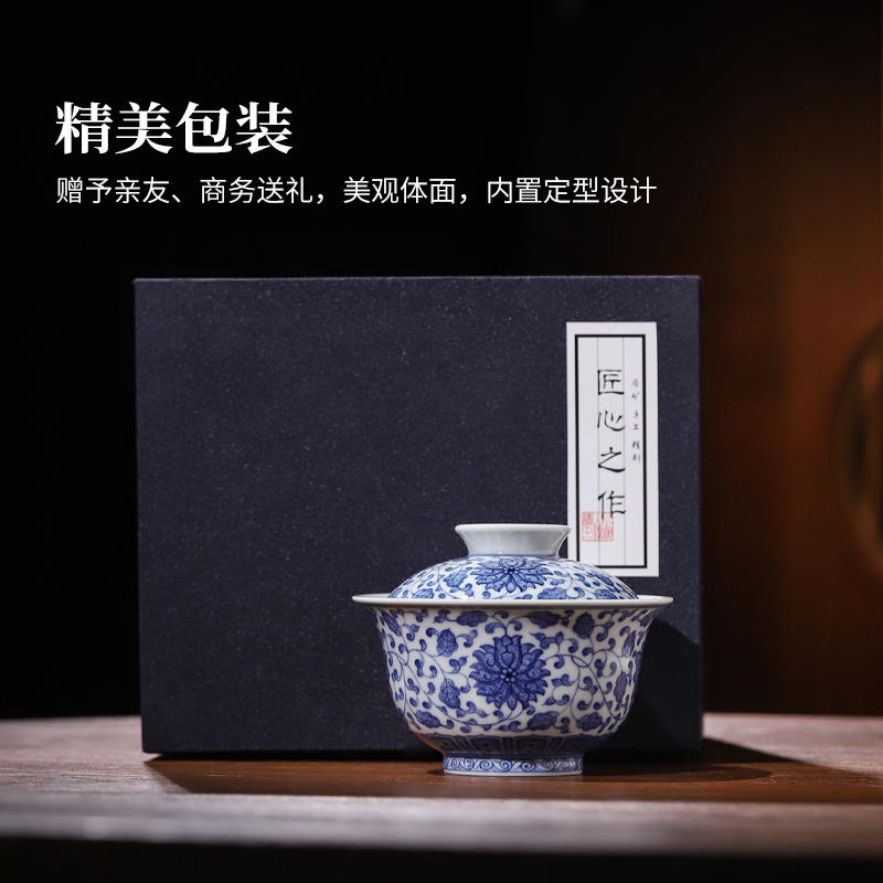 景德镇官方陶瓷茶具礼盒青花缠枝莲盖碗手绘高端节日送礼仿古款