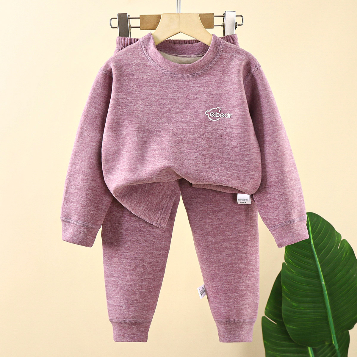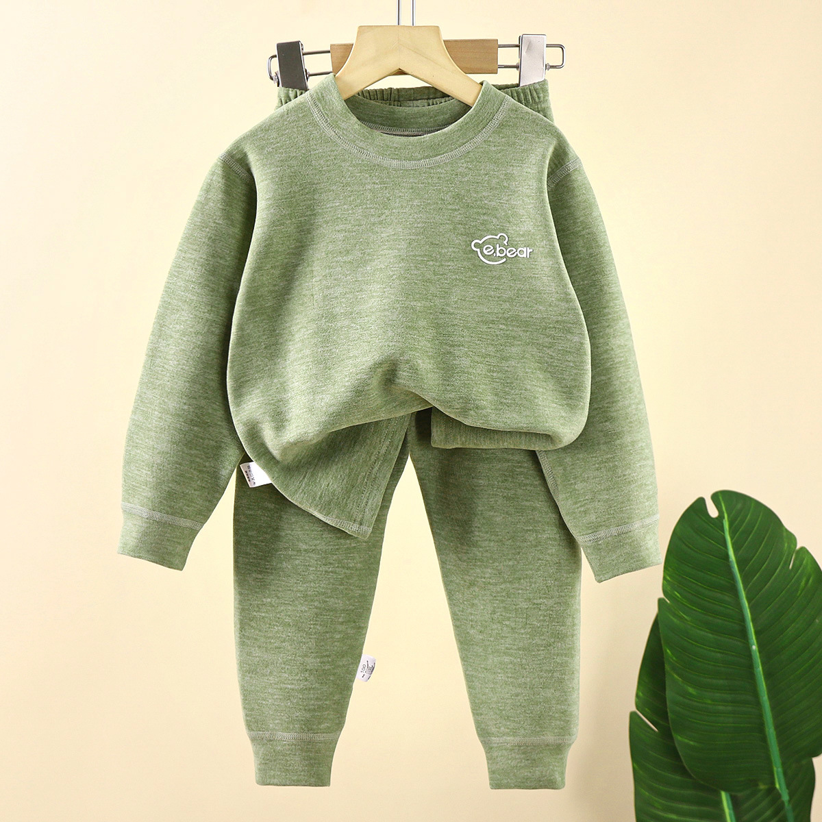 山羊绒桑蚕丝儿童保暖内衣套装男女德绒AB面秋衣秋裤中小童家居服