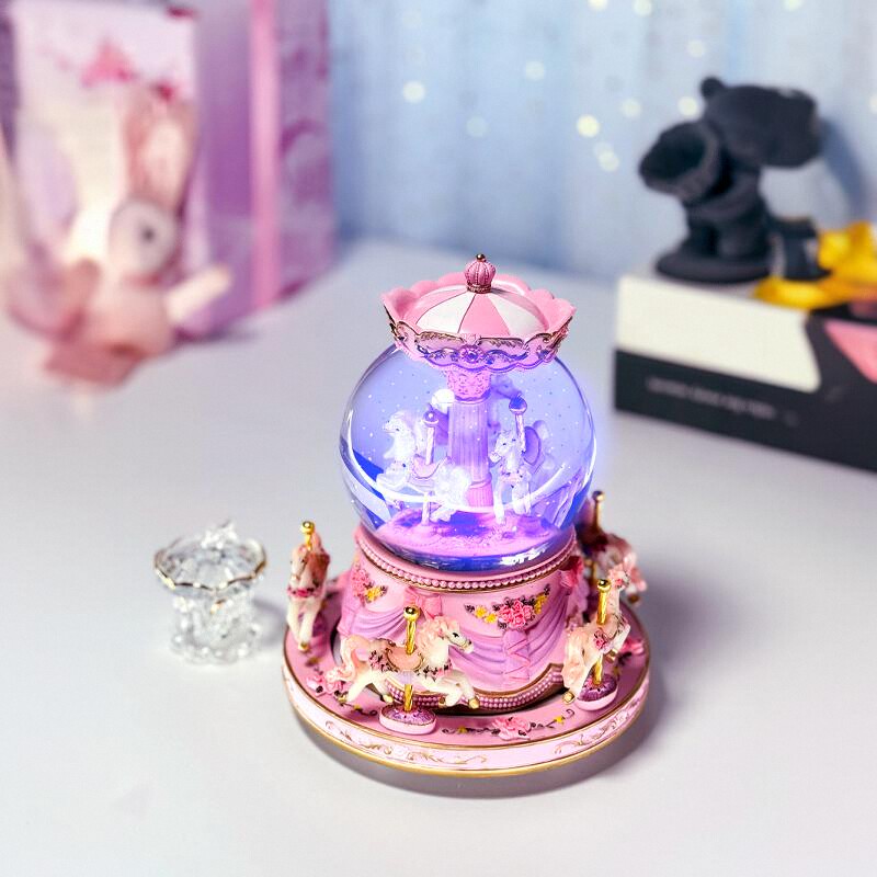 旋转木马音乐盒生日礼物水晶球八音盒女孩送女生儿童十岁蓝牙礼品