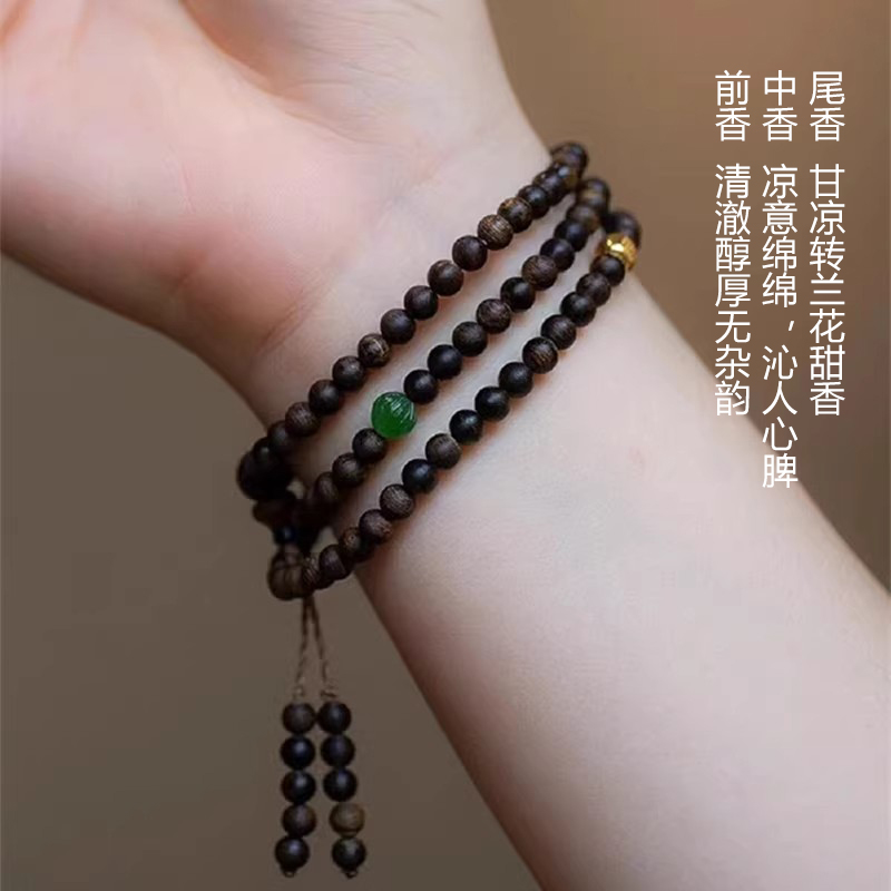 文莱沉香手串清香味黑奇楠老料108颗沉水天然手链男女款文玩佛珠