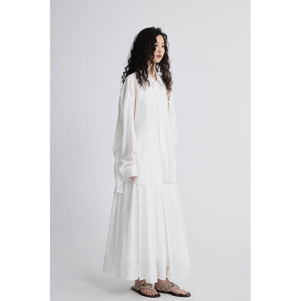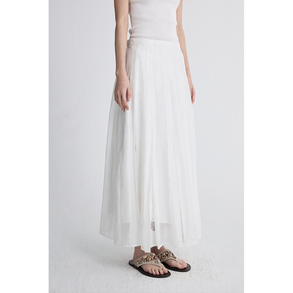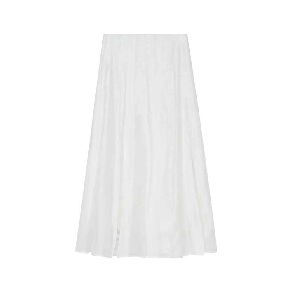 【水帘纱缎裙】CAREMIND白色纱缎灵动刺绣蕾丝半身裙A字百褶纱裙