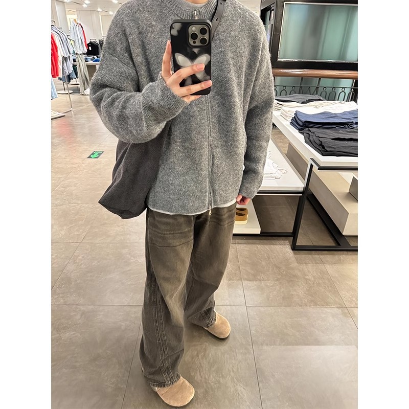马海毛针织开衫外套男春秋款拉链毛衣慵懒高级感短款cleanfit