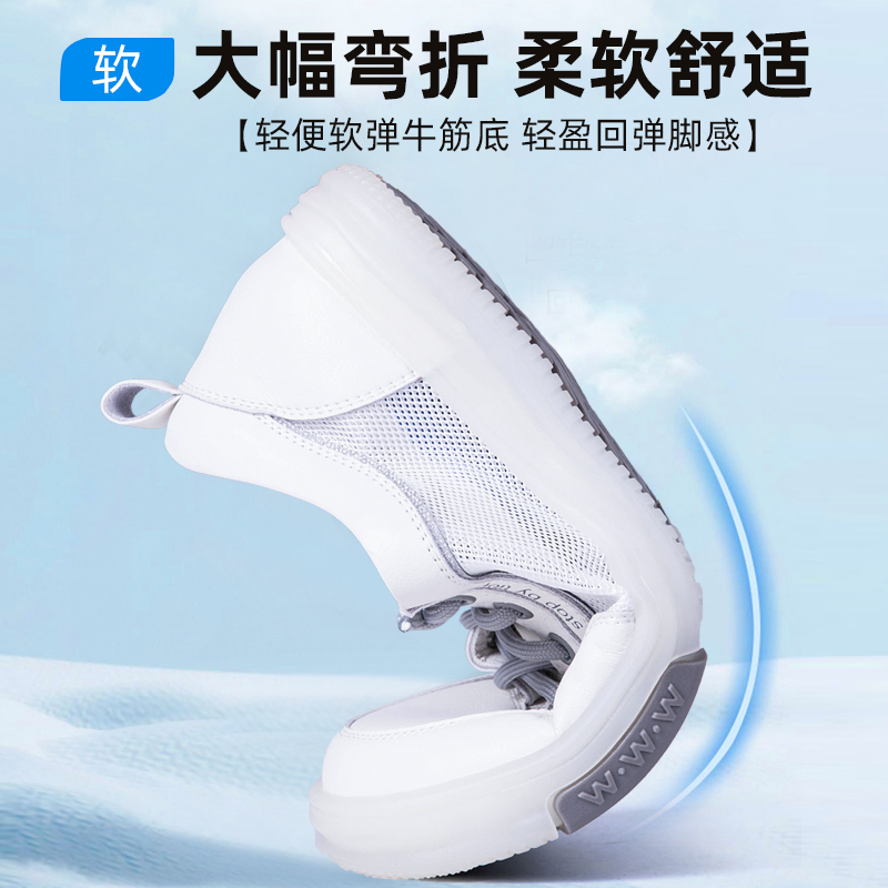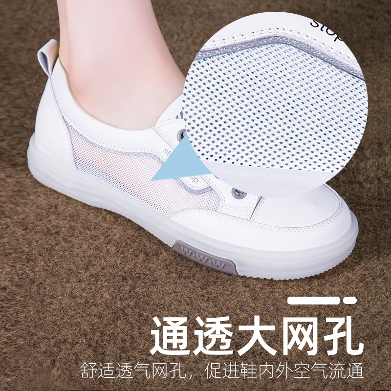 小白鞋女2025新款夏季薄款网面透气真皮女鞋牛筋底百搭平底一脚蹬
