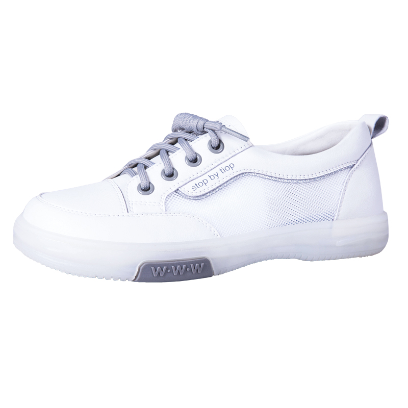 休闲平底圆头小白鞋真皮女鞋
