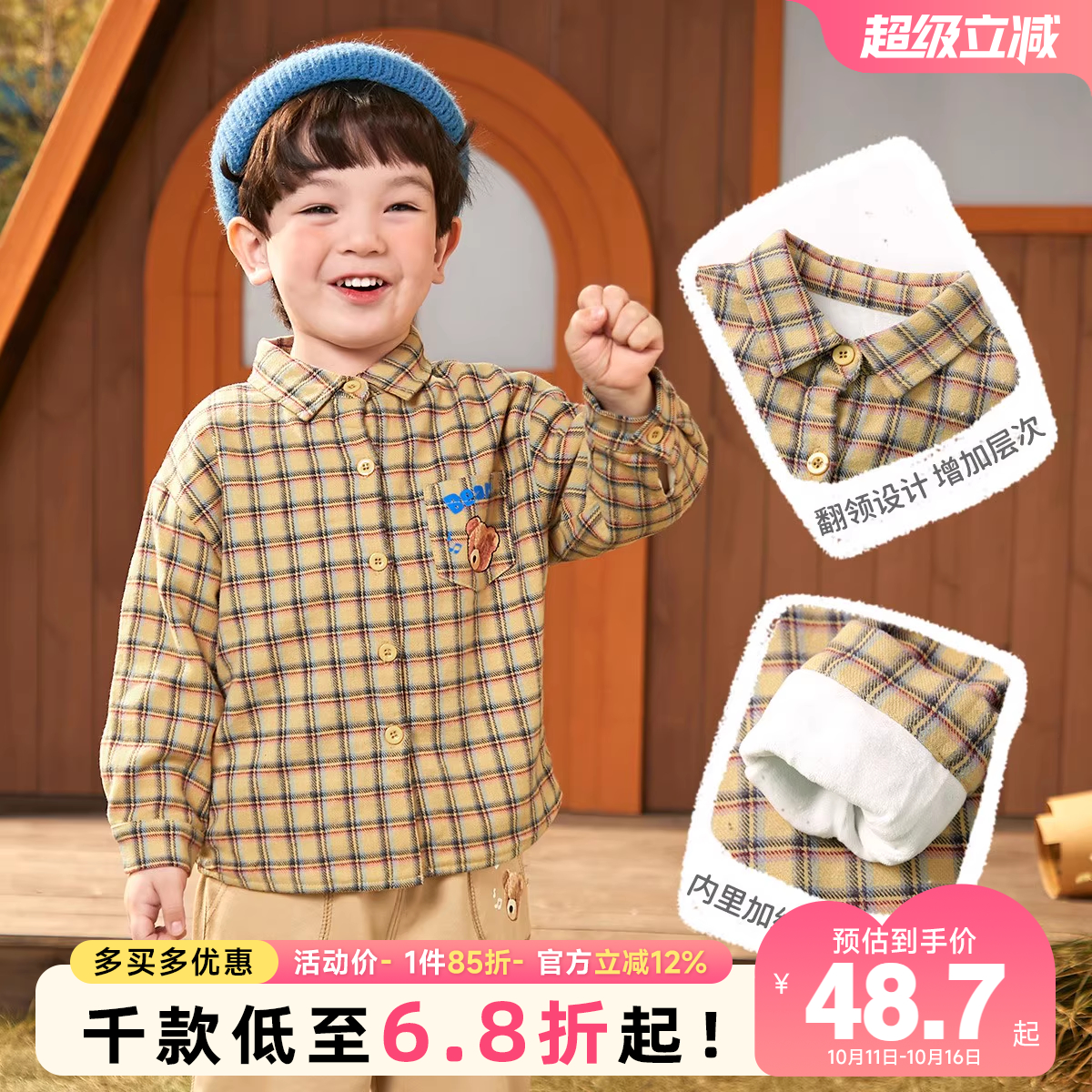 宝宝衬衫冬季婴儿长袖上衣秋款加绒童装秋冬休闲男童衣服秋装F