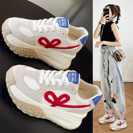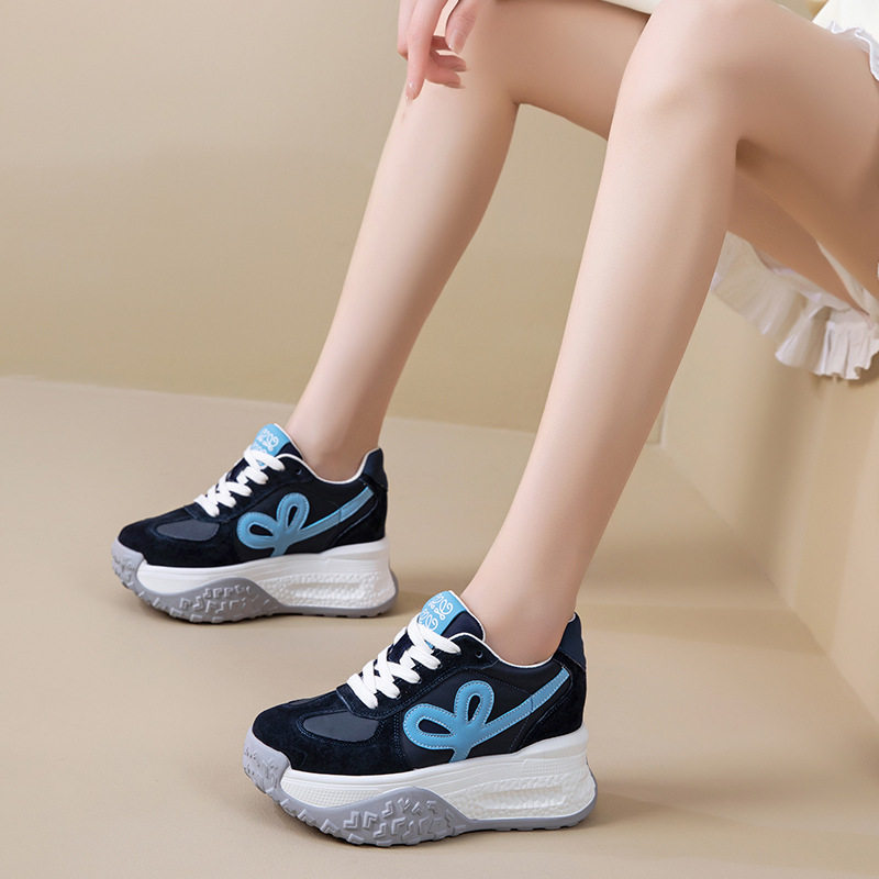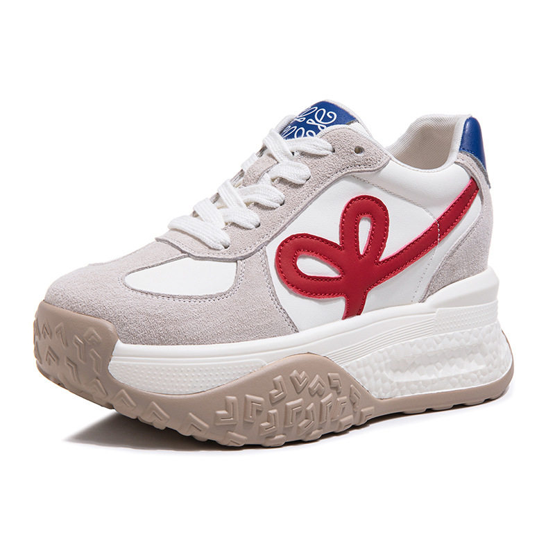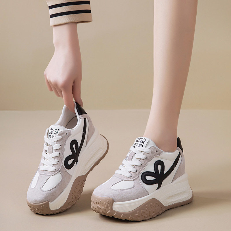 真皮老爹鞋女小白鞋2026新款小个子厚底内增高9CM运动休闲鞋单鞋