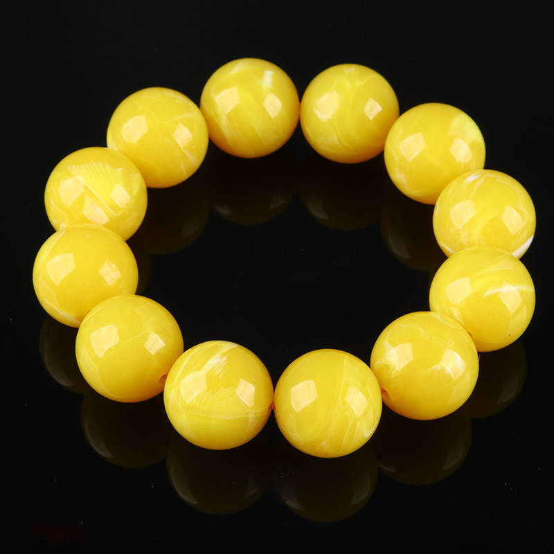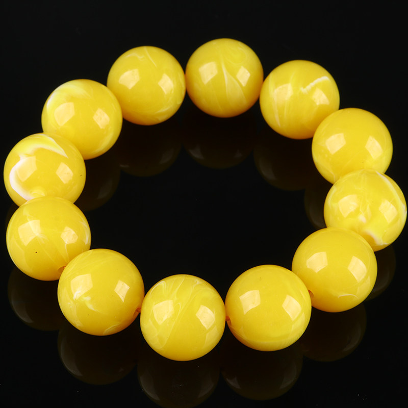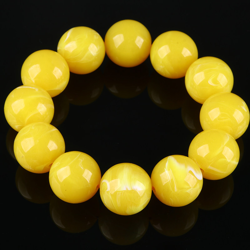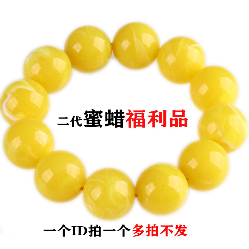 俄料鸡油黄妖花圆珠二代蜜蜡仿蜜蜡手串手链文玩福利品送男女礼物