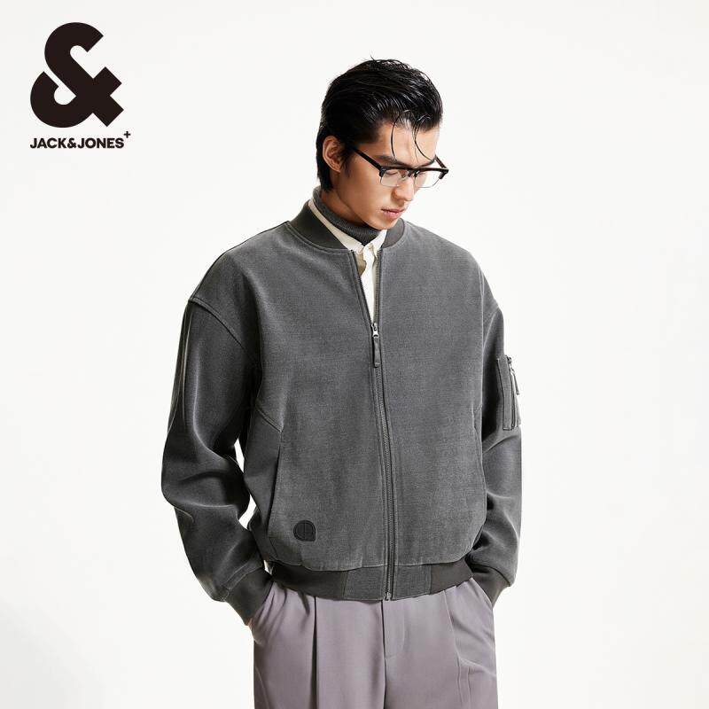 杰克琼斯男装夹克 外套春季衣身多材质拼接罗纹棒球领宽松男装