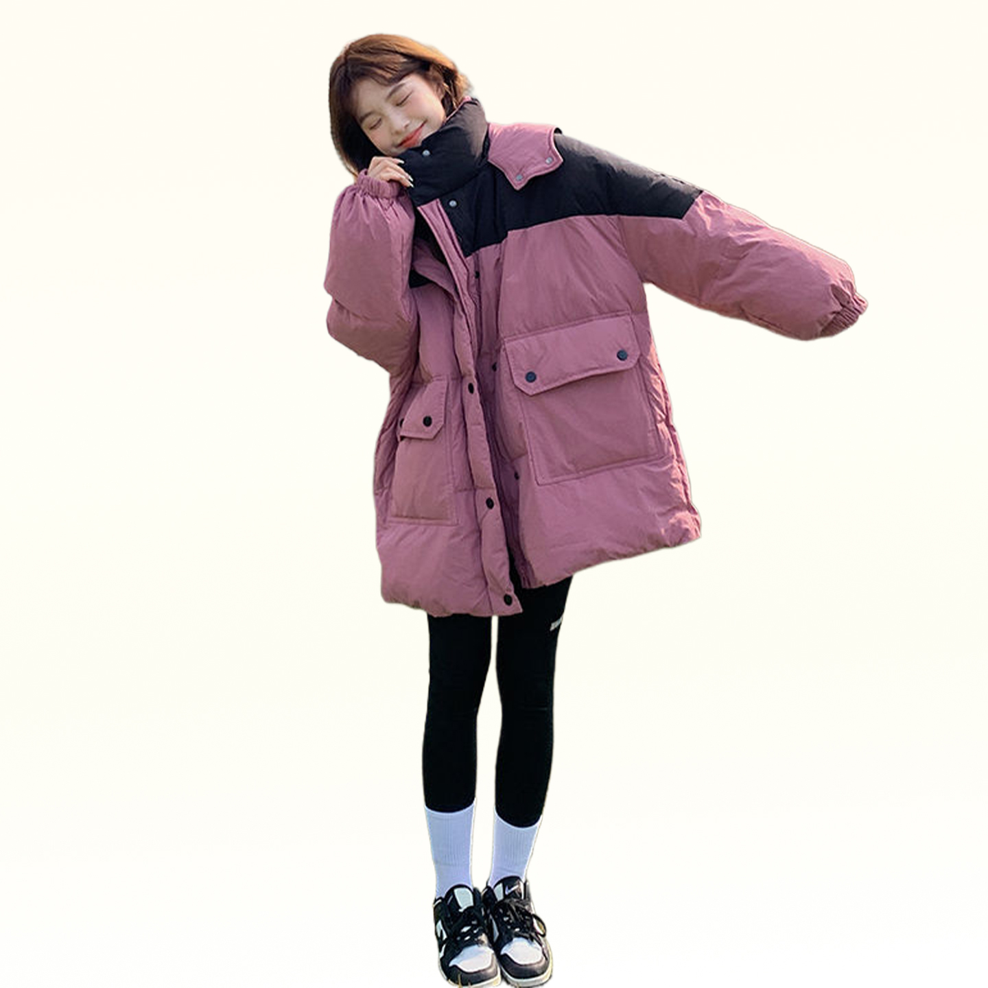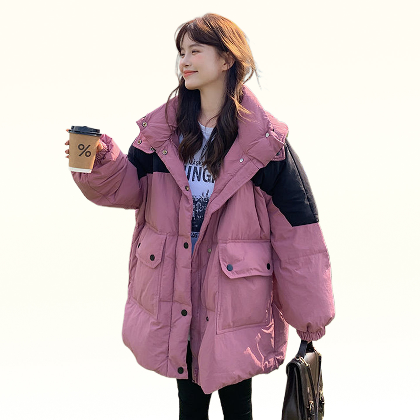 胖mm特大码韩系宽松设计感撞色棉服外套女冬季加厚保暖甜美风上衣