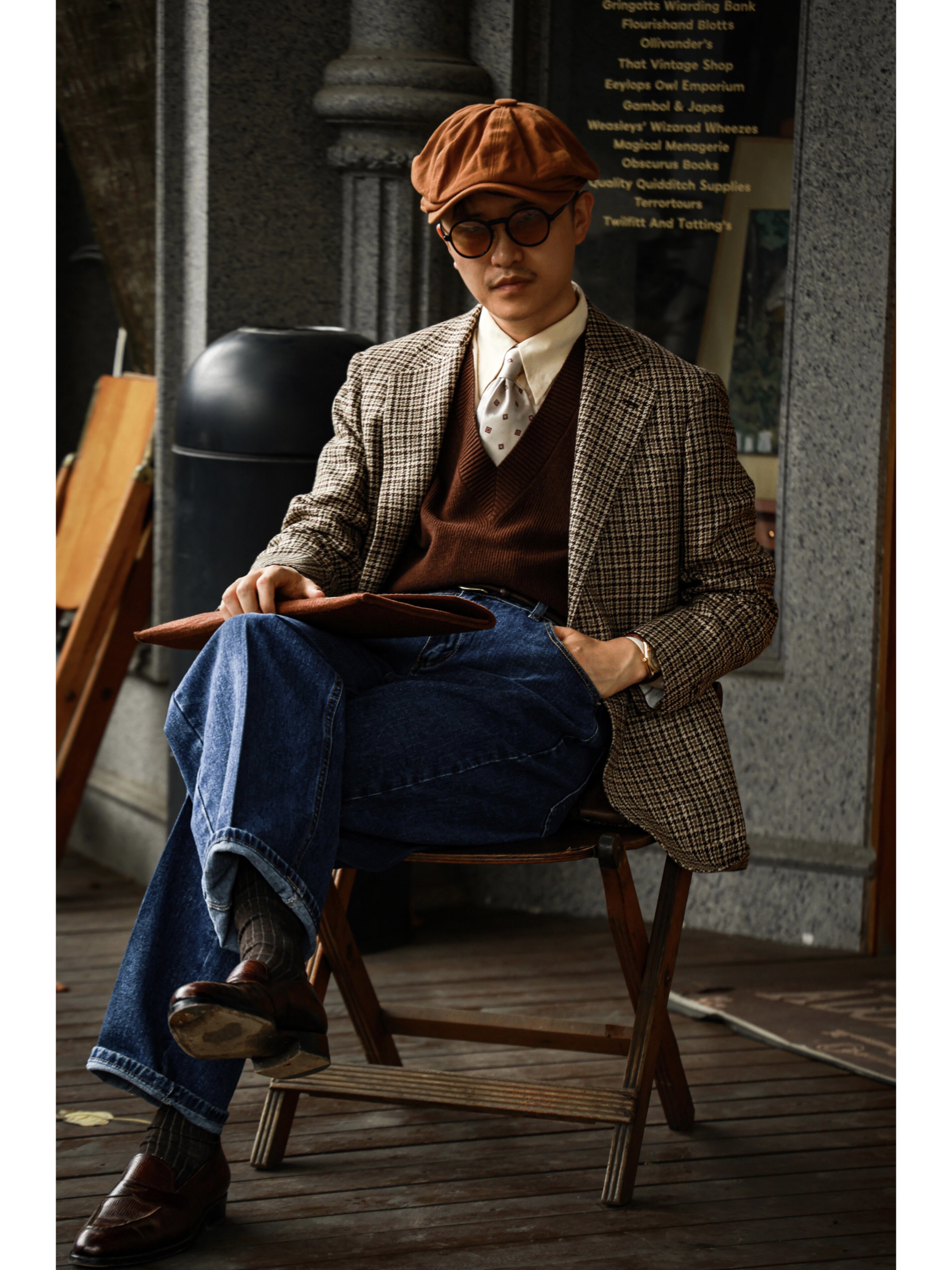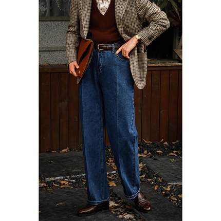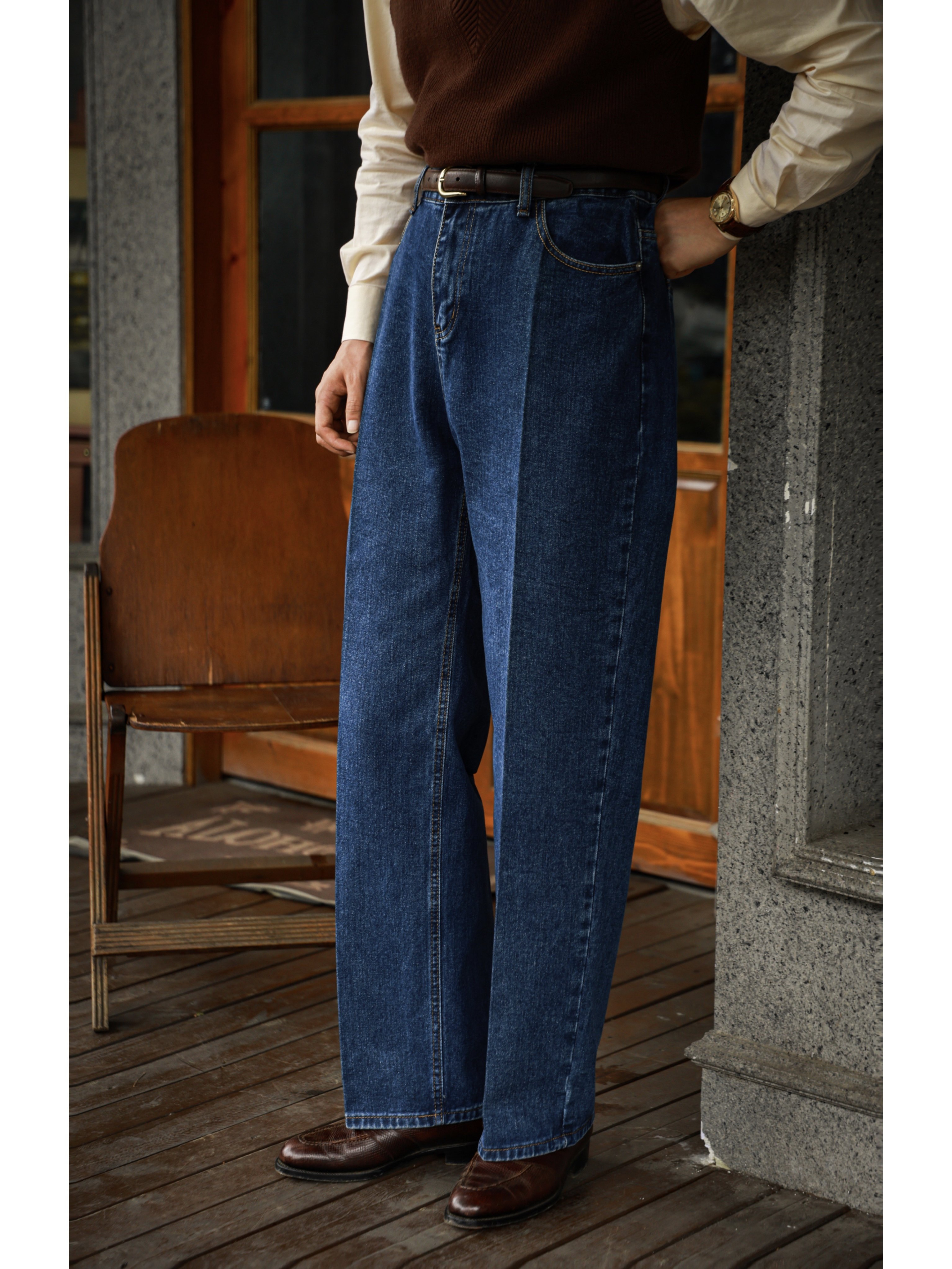 UGENTLE男装品牌 丹宁色1 中高腰复古绅士休闲 水洗宽松 牛仔长裤