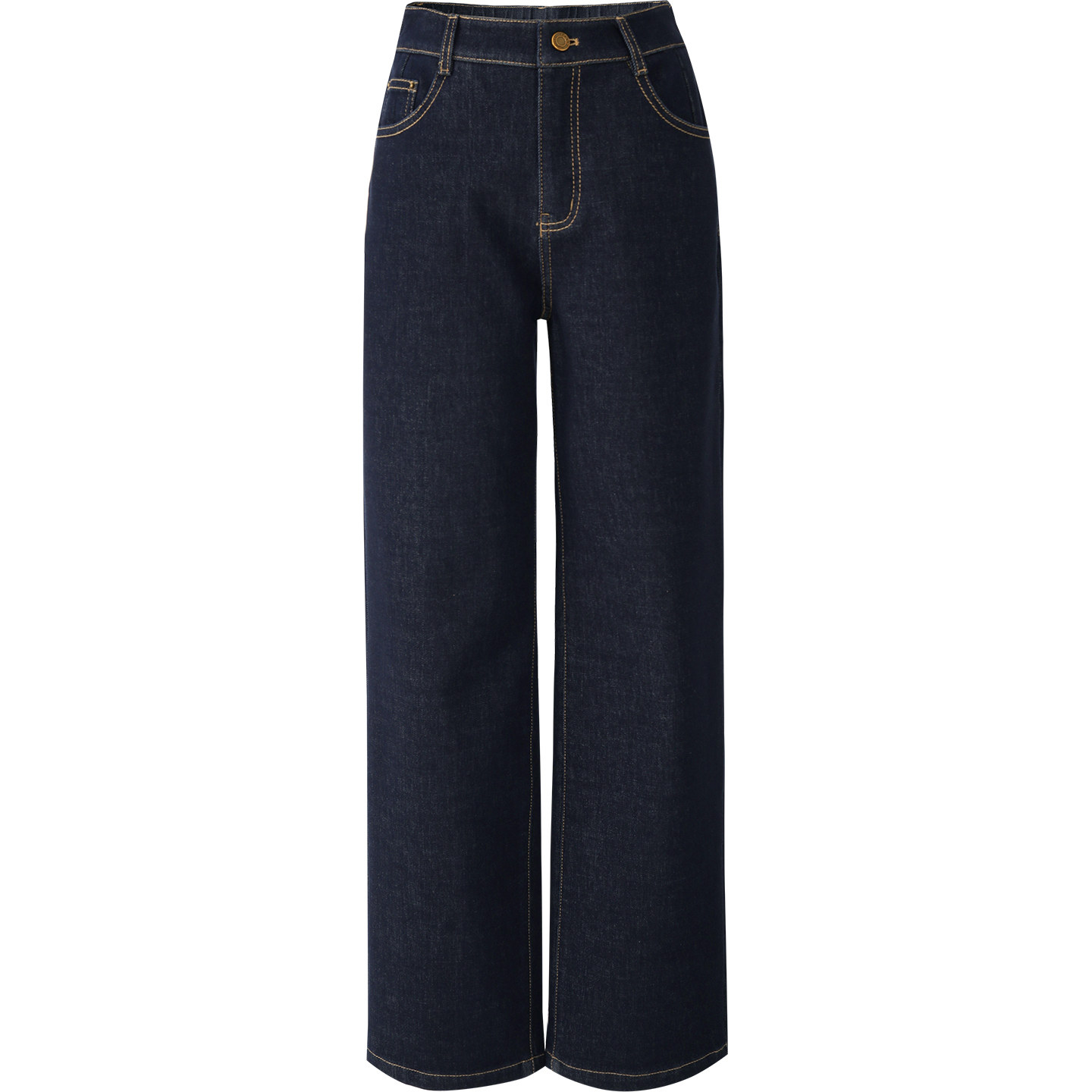 娅丽达加绒宽松阔腿牛仔裤女2025冬季新款加厚大码女裤米白直筒裤