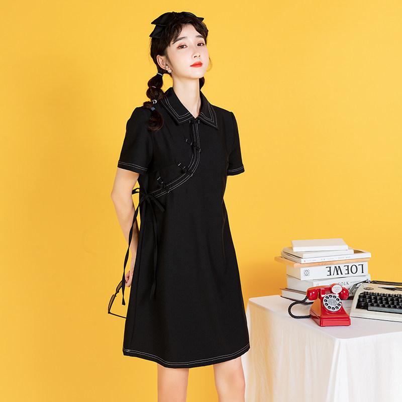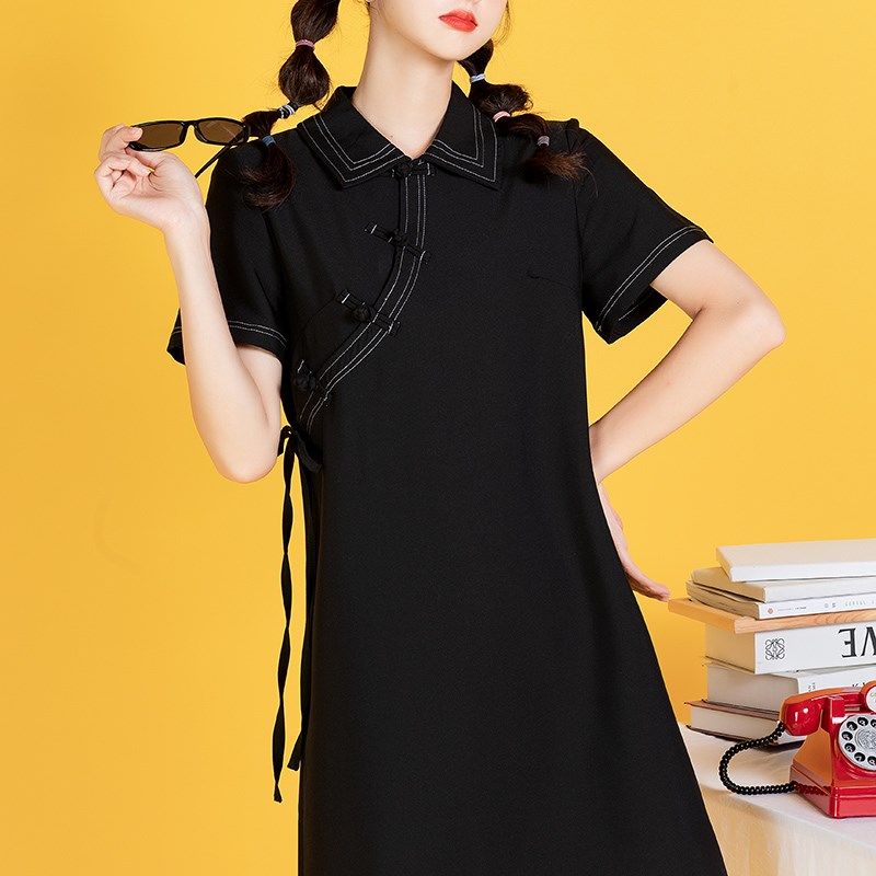 大码旗袍夏季2021年新款年轻款中国风女装胖mm黑色女夏改良连衣裙