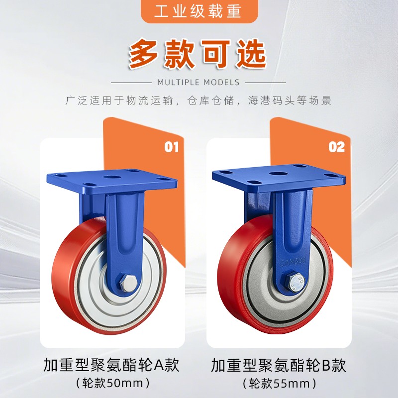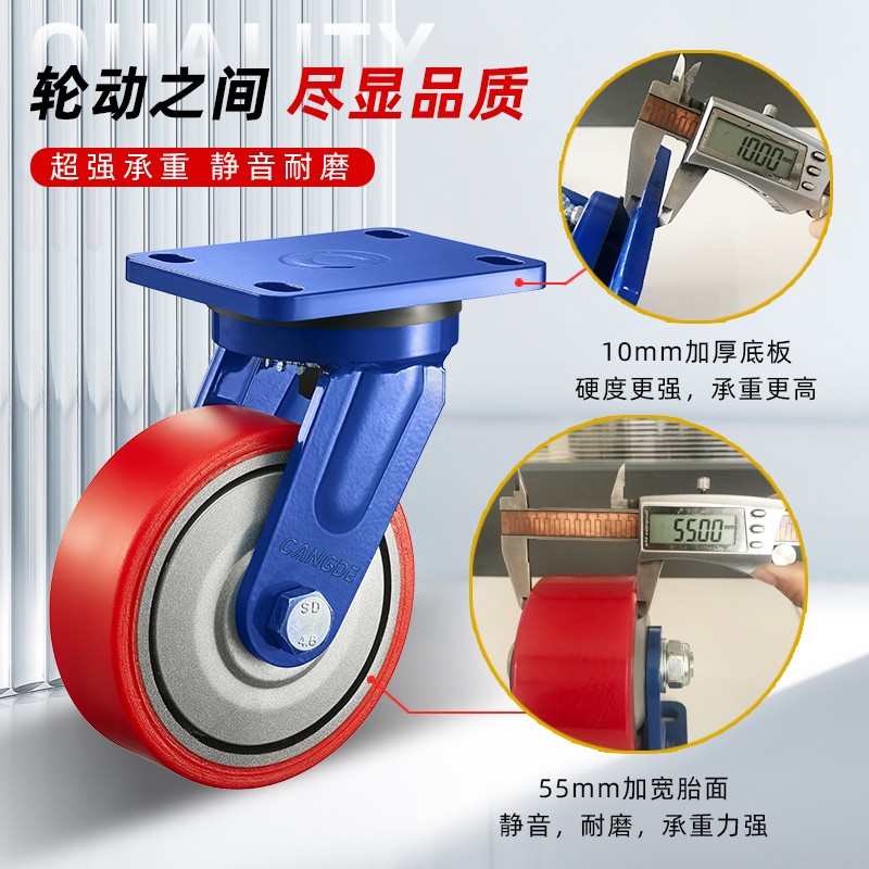 板车轮重型聚氨酯定向轮万向轮静音耐磨脚轮工业设备轮子带刹车