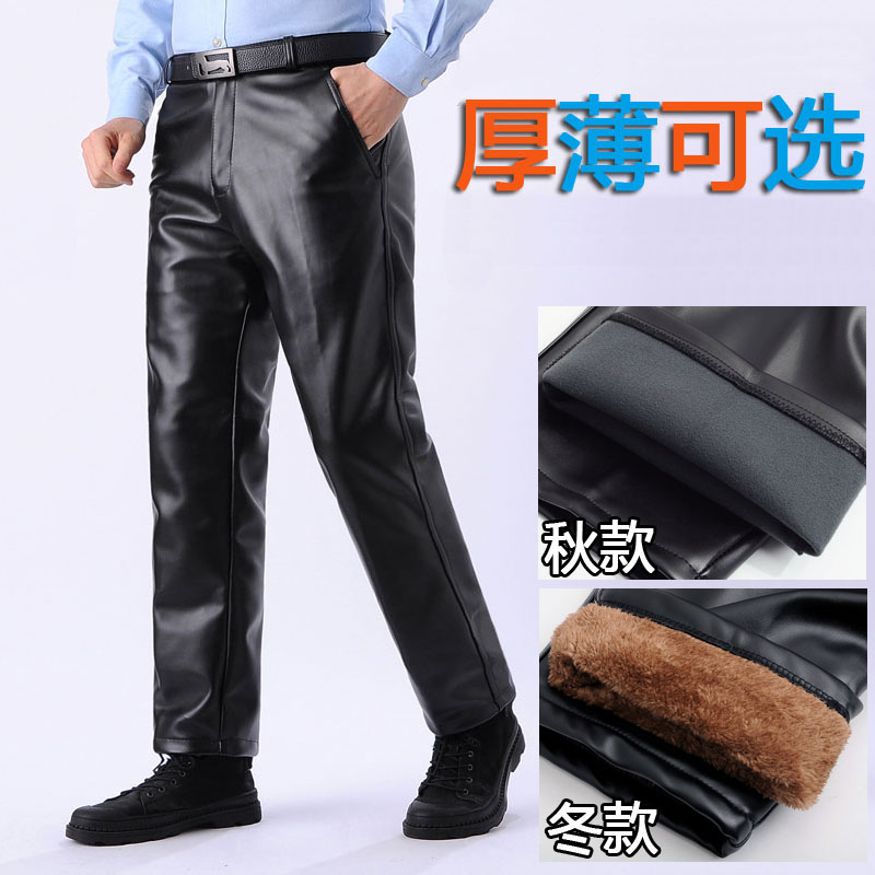 皮裤男春夏单款中老年宽松加绒加厚保暖摩托车骑行防风防水工作服