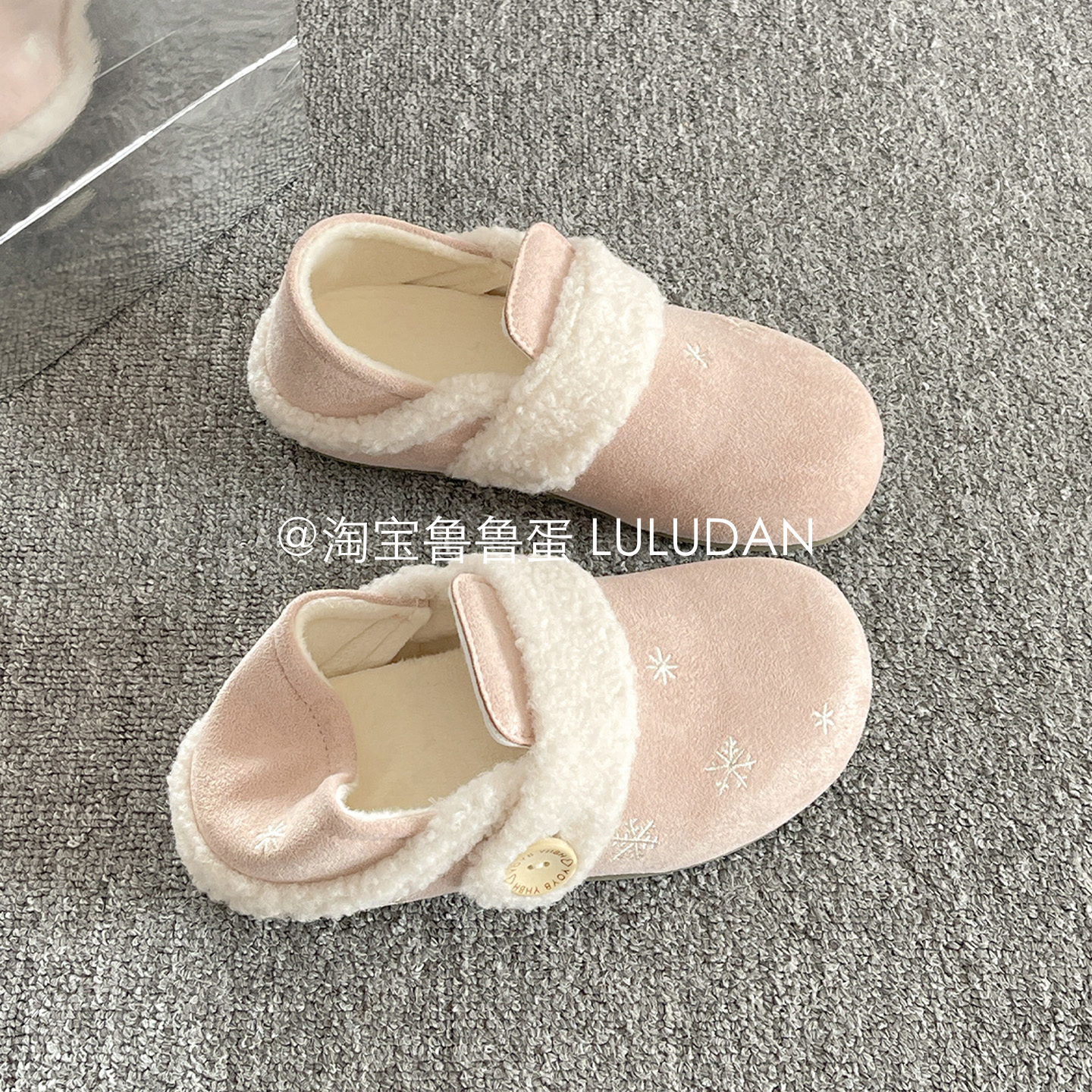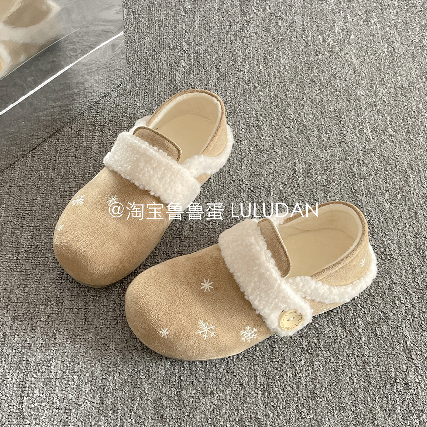 鲁鲁蛋 一脚蹬加绒勃肯鞋全包女2025新款冬季魔术贴毛毛二棉鞋子