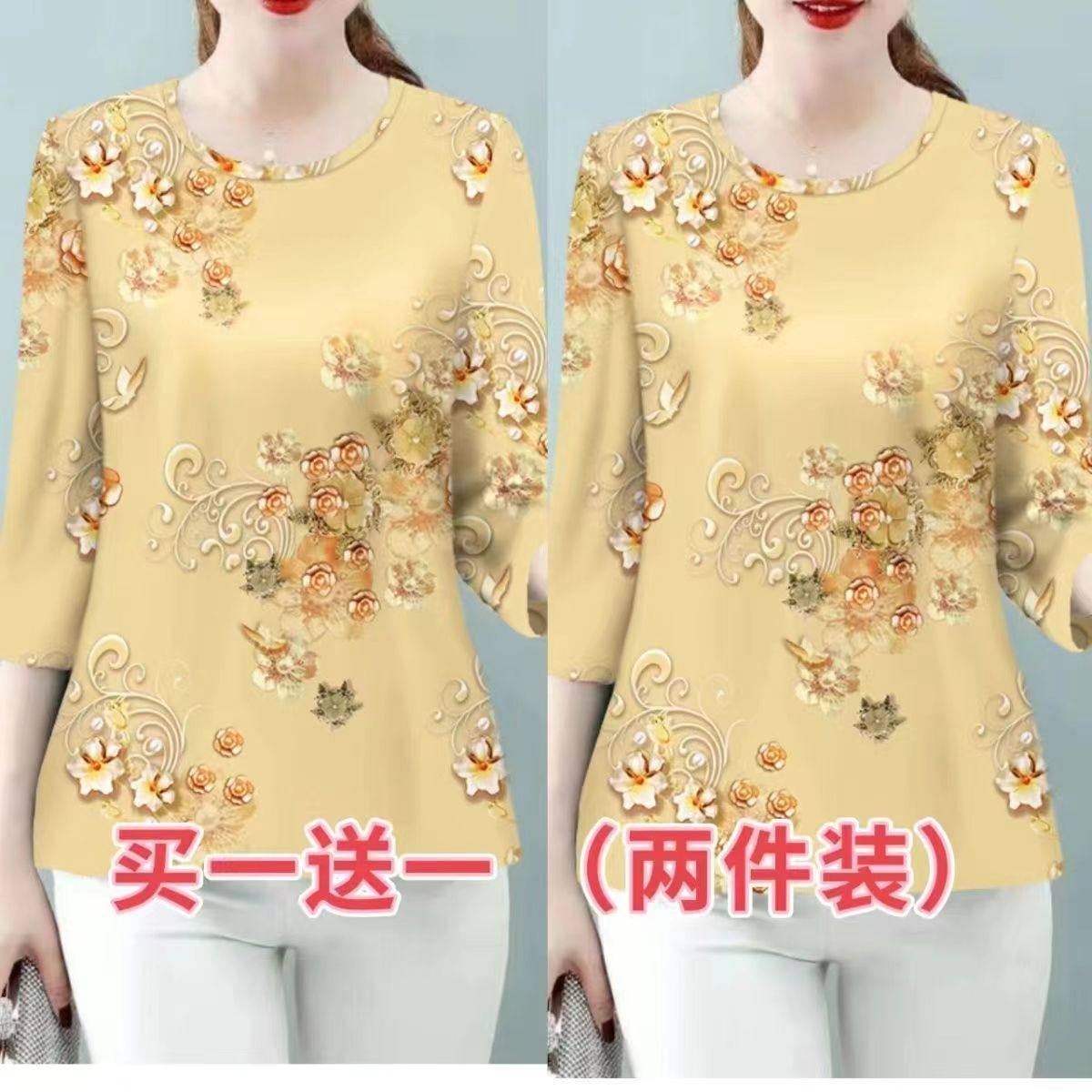 【买一送一】2024夏季新款妈妈装宽松上衣女显瘦七分袖t恤打底衫