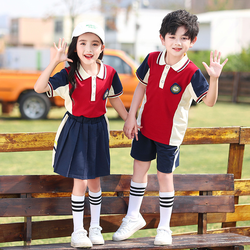 小学生校服酒红色夏季运动套装幼儿园毕业照班服夏季款英伦风园服
