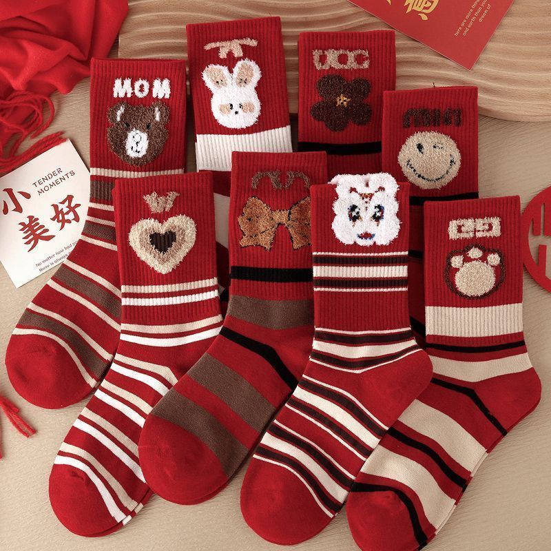 本命年大红色百搭舒适ins中筒袜