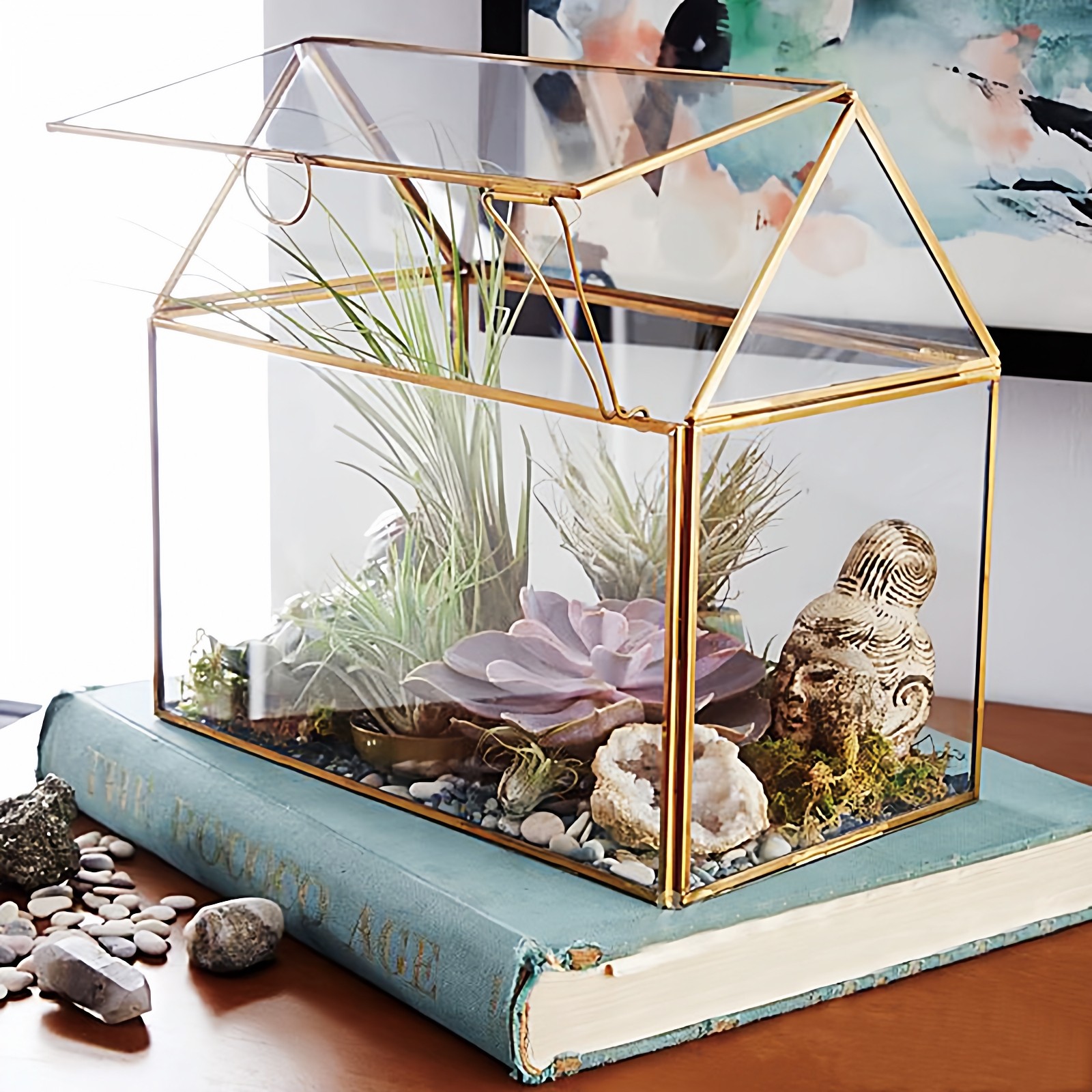 简约几何玻璃罩花盒摆件装饰卧室