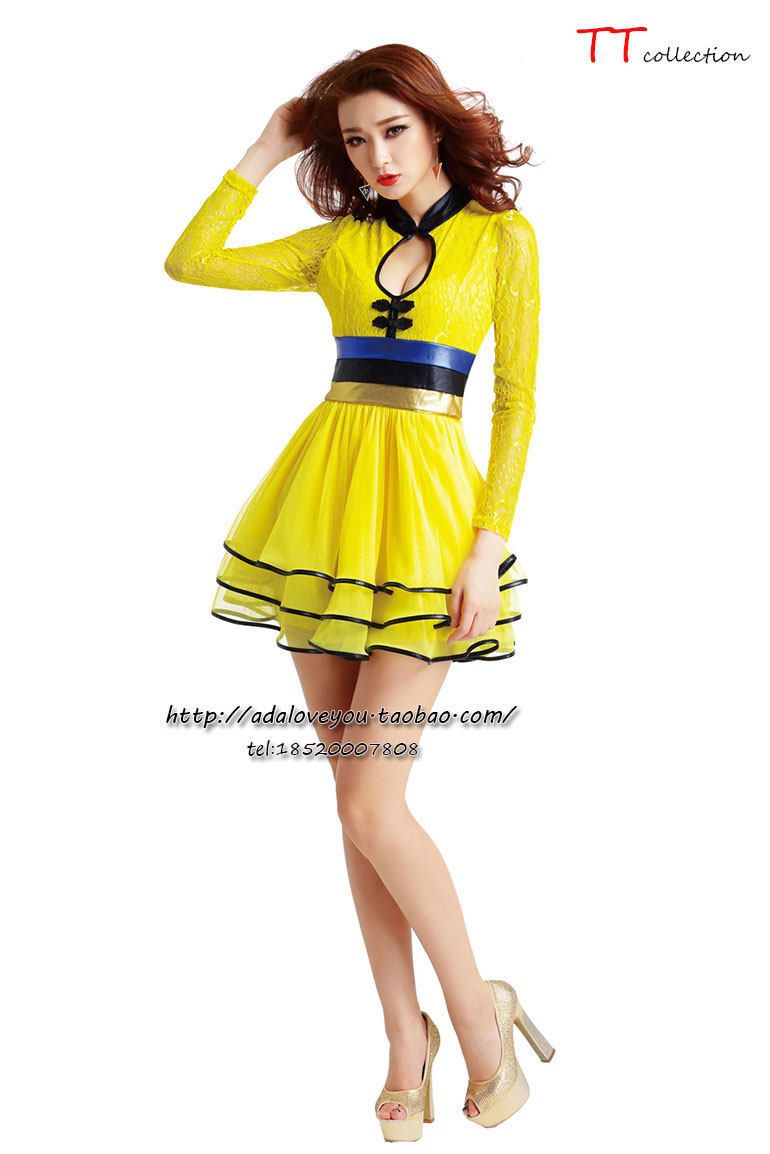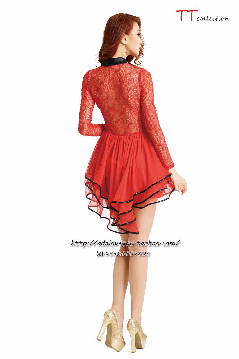 2023新款长袖大码连衣裙 夜店蕾丝镂空不规则下摆性感低胸蓬蓬裙