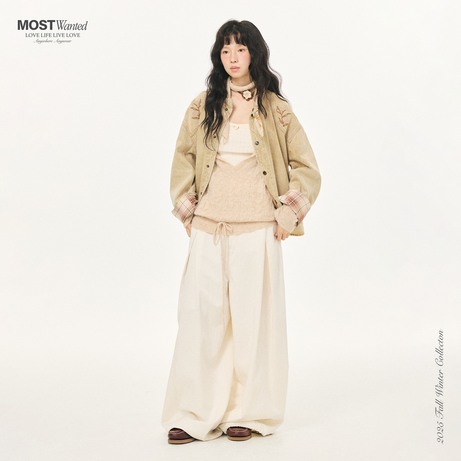 mostwanted可拆卸领格纹拼接刺绣牛仔外套女2025秋冬新款夹克