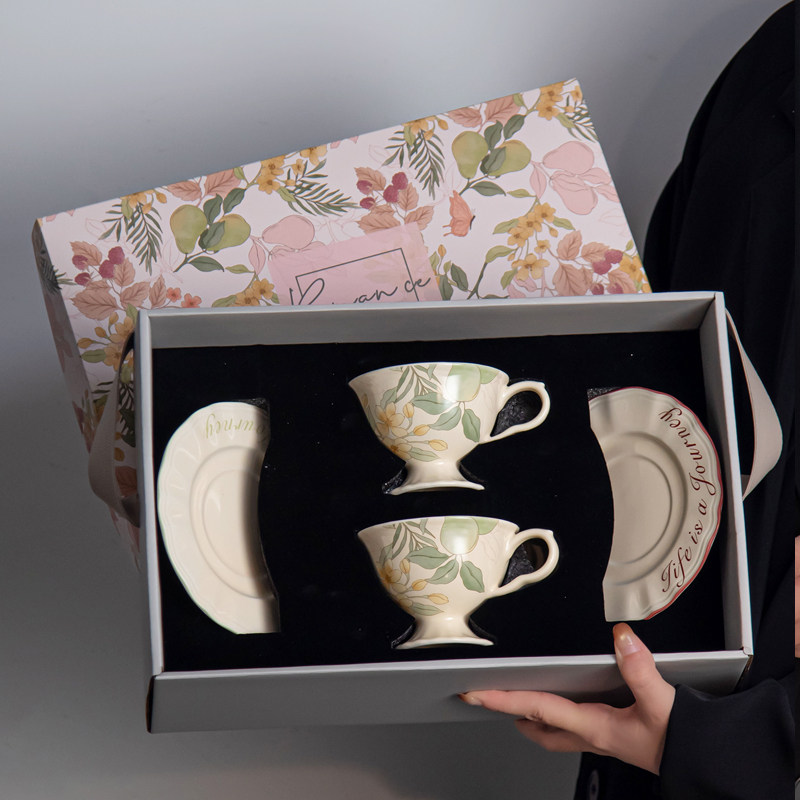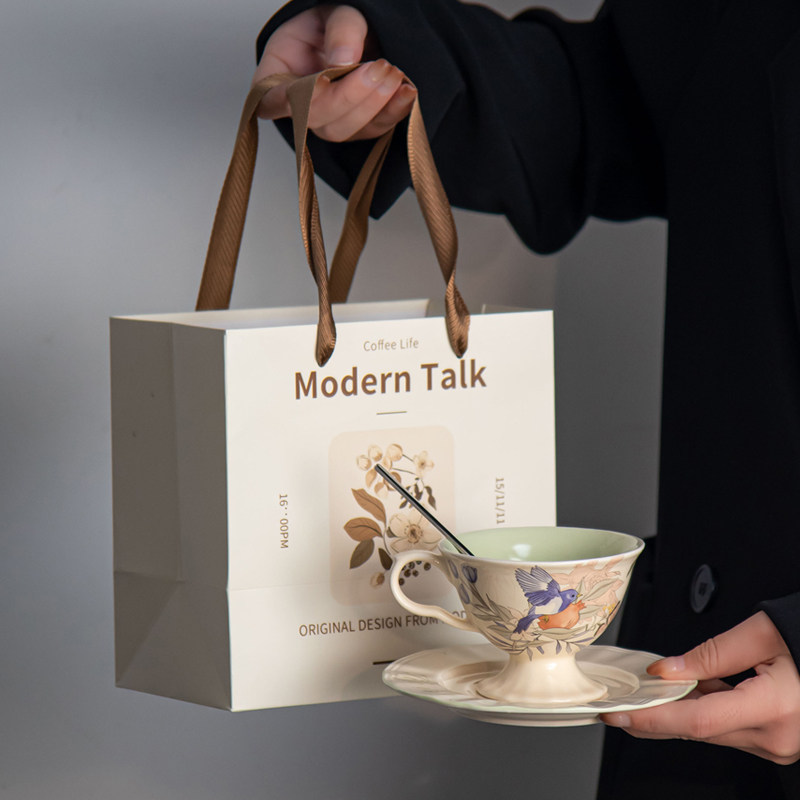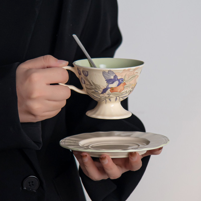 中世纪复古优雅咖啡杯碟套装法式氛围感陶瓷马克杯家用喝水杯子