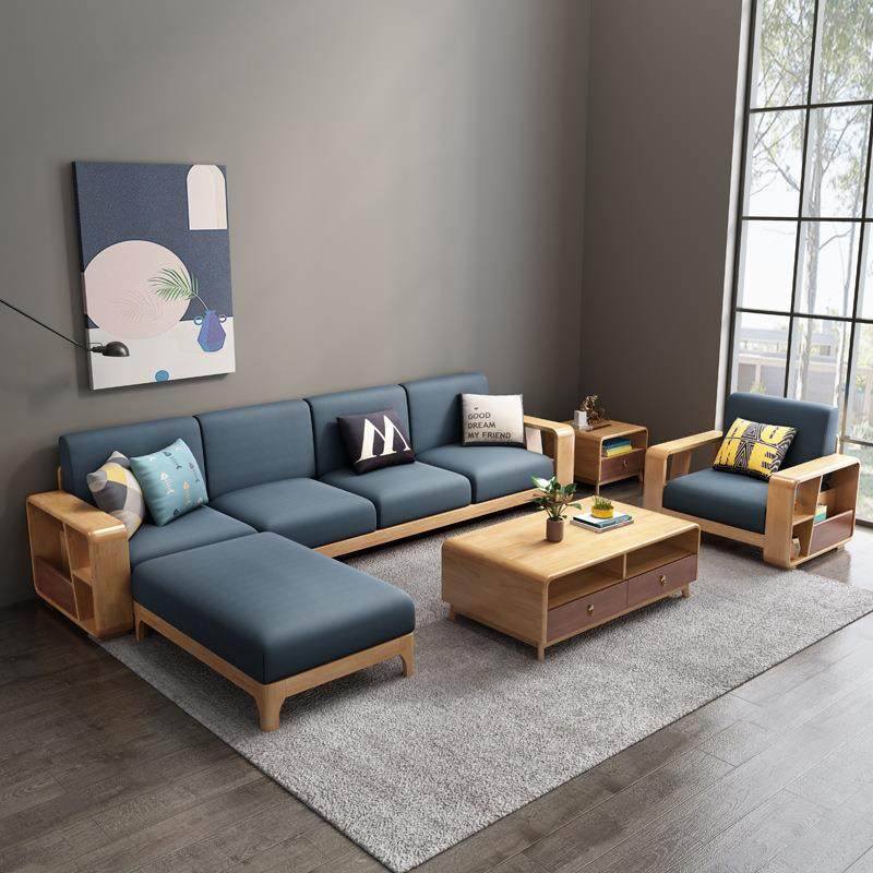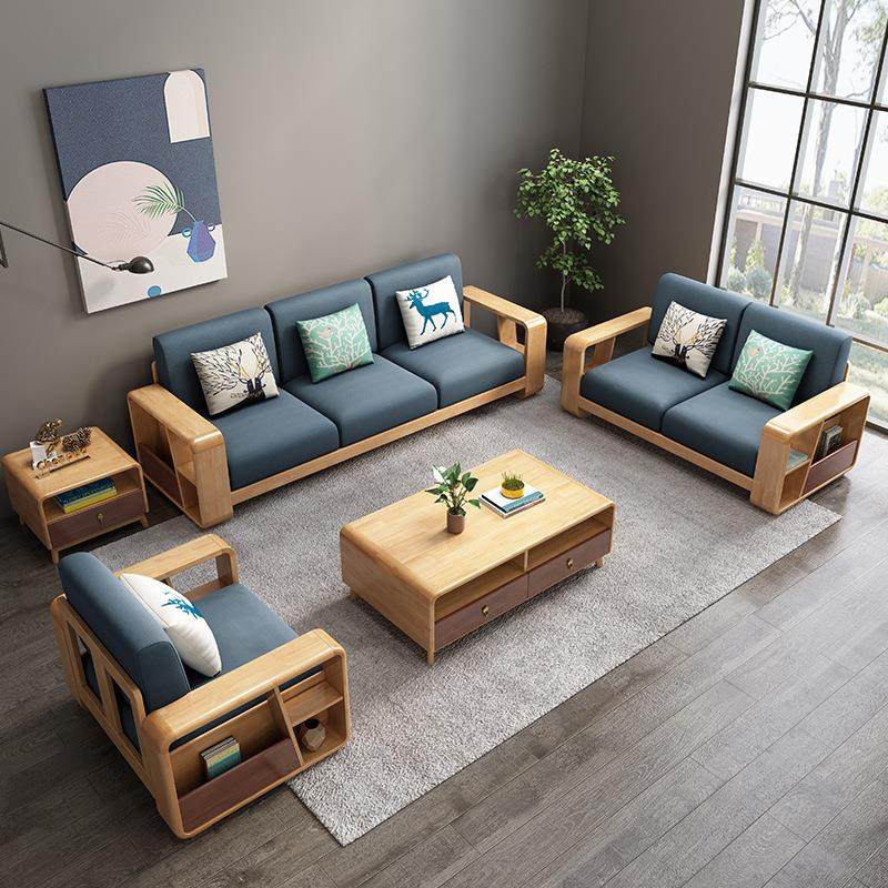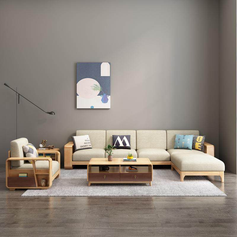 北欧现代简约实木沙发客厅布艺沙发储物小户型贵妃转角组合套装