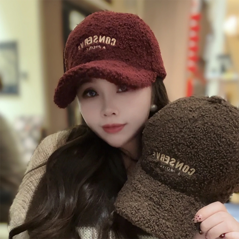 加厚羊羔毛刺绣棒球帽子女秋冬季