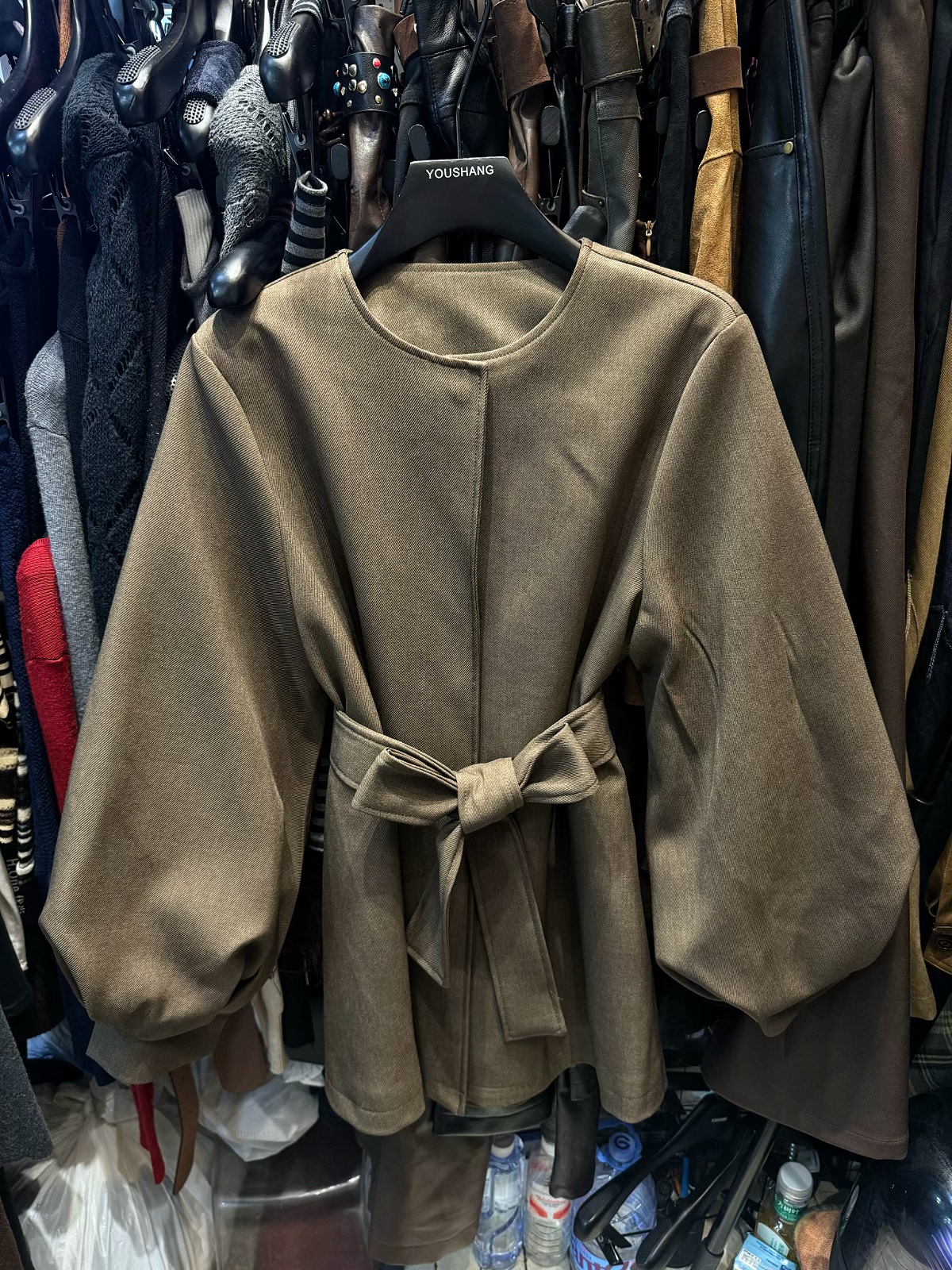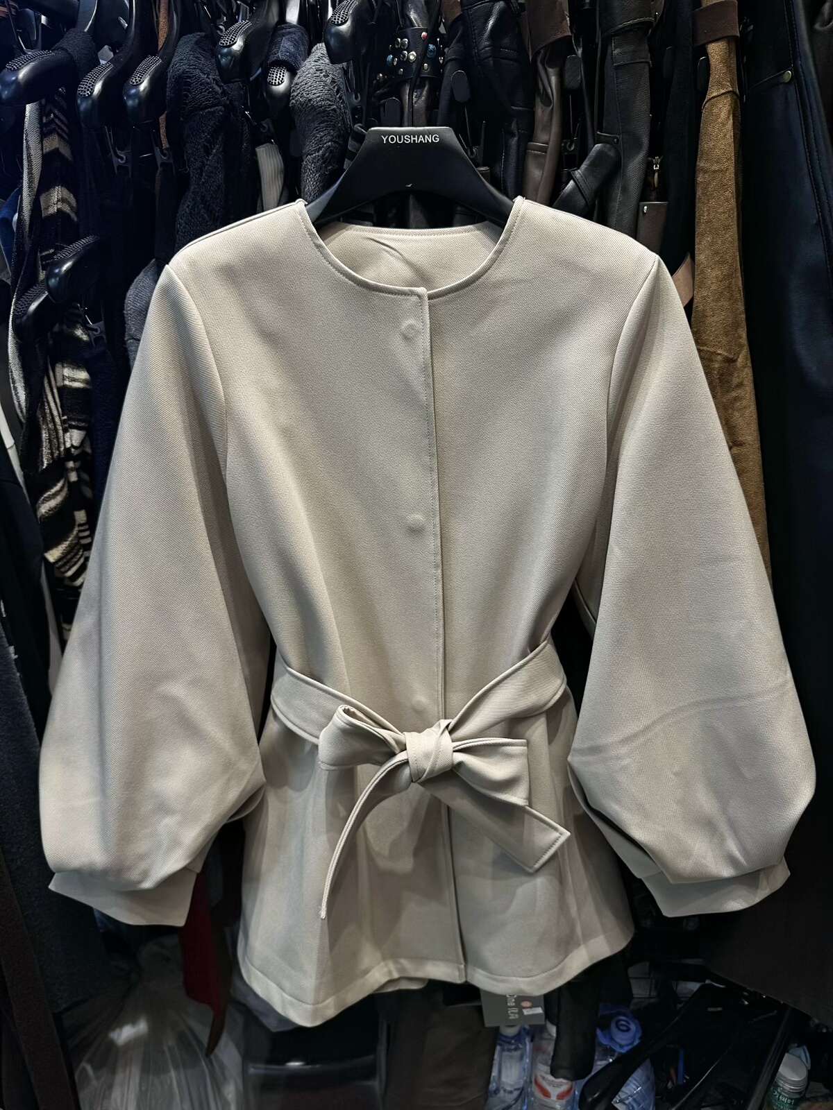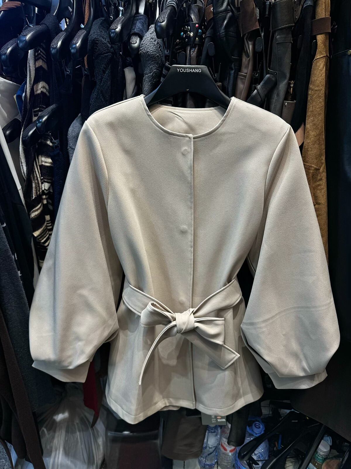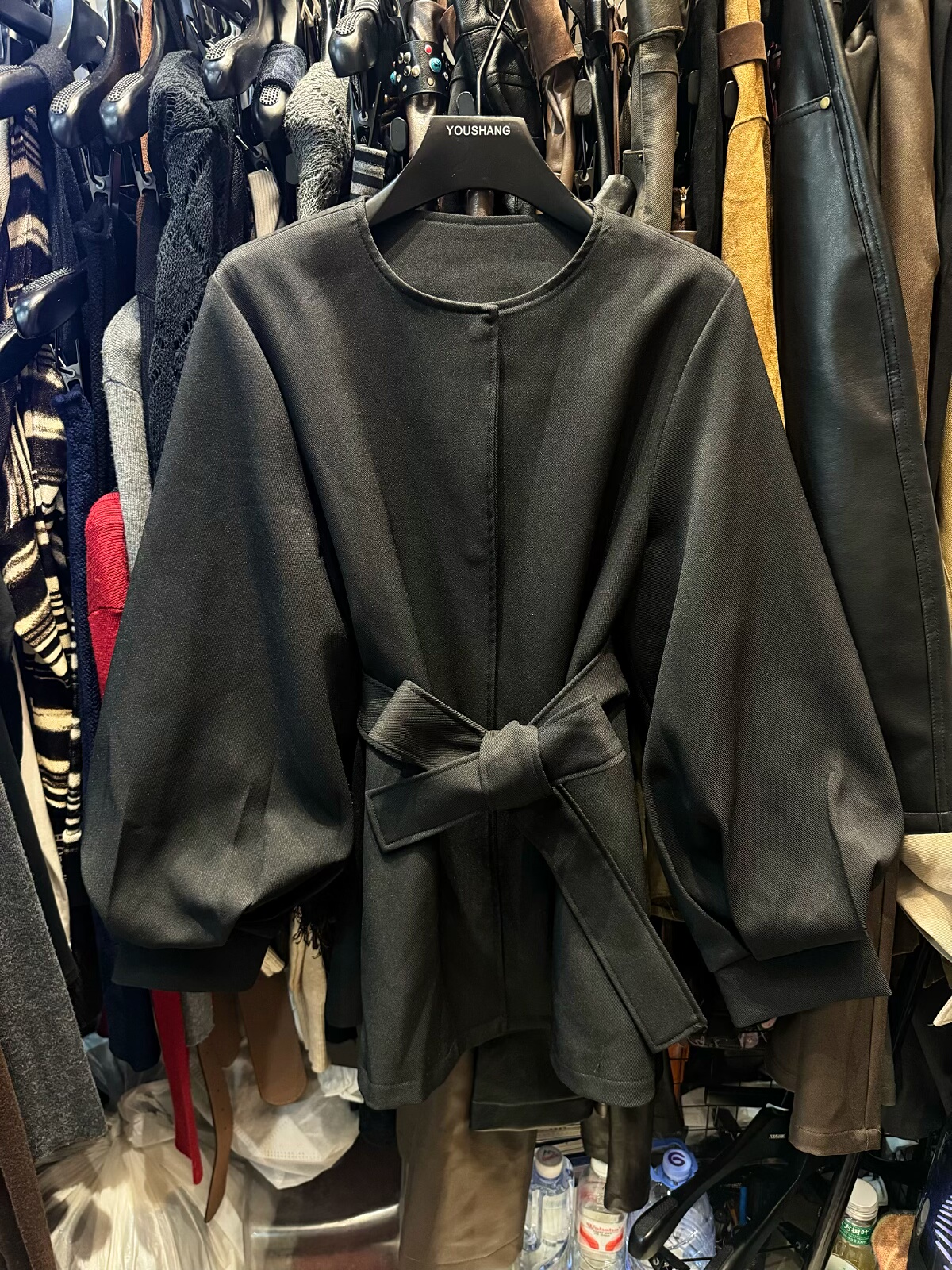 韩系高级气质圆领系腰带收腰显瘦风衣外套宽松休闲中长款大衣女秋