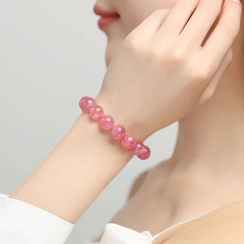 粉晶手串马达加斯加马粉手链粉色水晶星光粉水晶桃花甜美