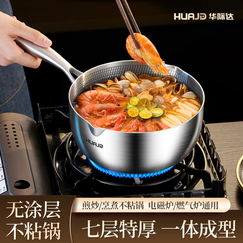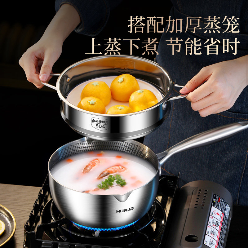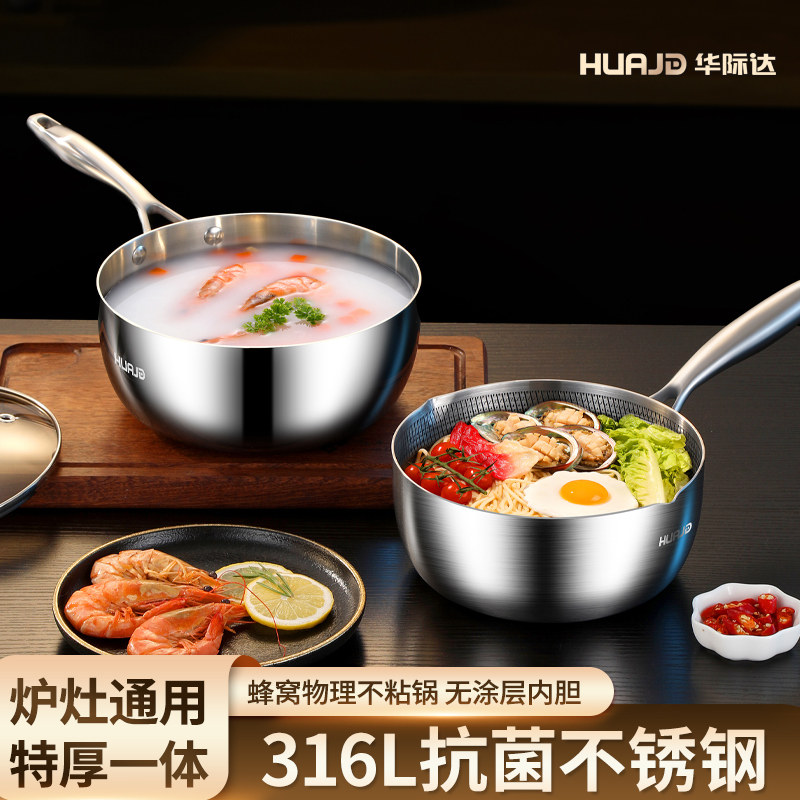 华际达雪平锅316不锈钢奶锅无涂层宝宝辅食锅不粘一人食泡面汤锅