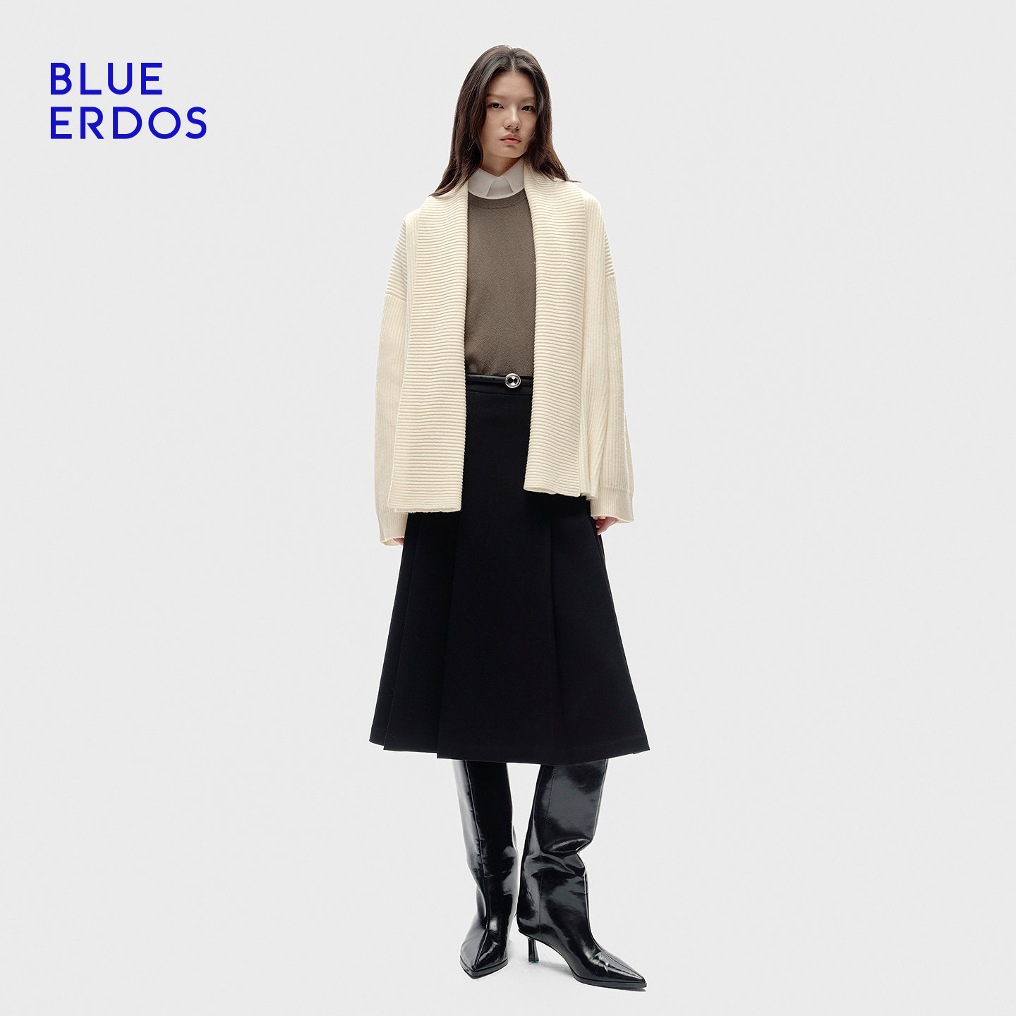 BLUE ERDOS冬季新品质感简约羊毛羊绒V领浴袍式开衫B256A1035