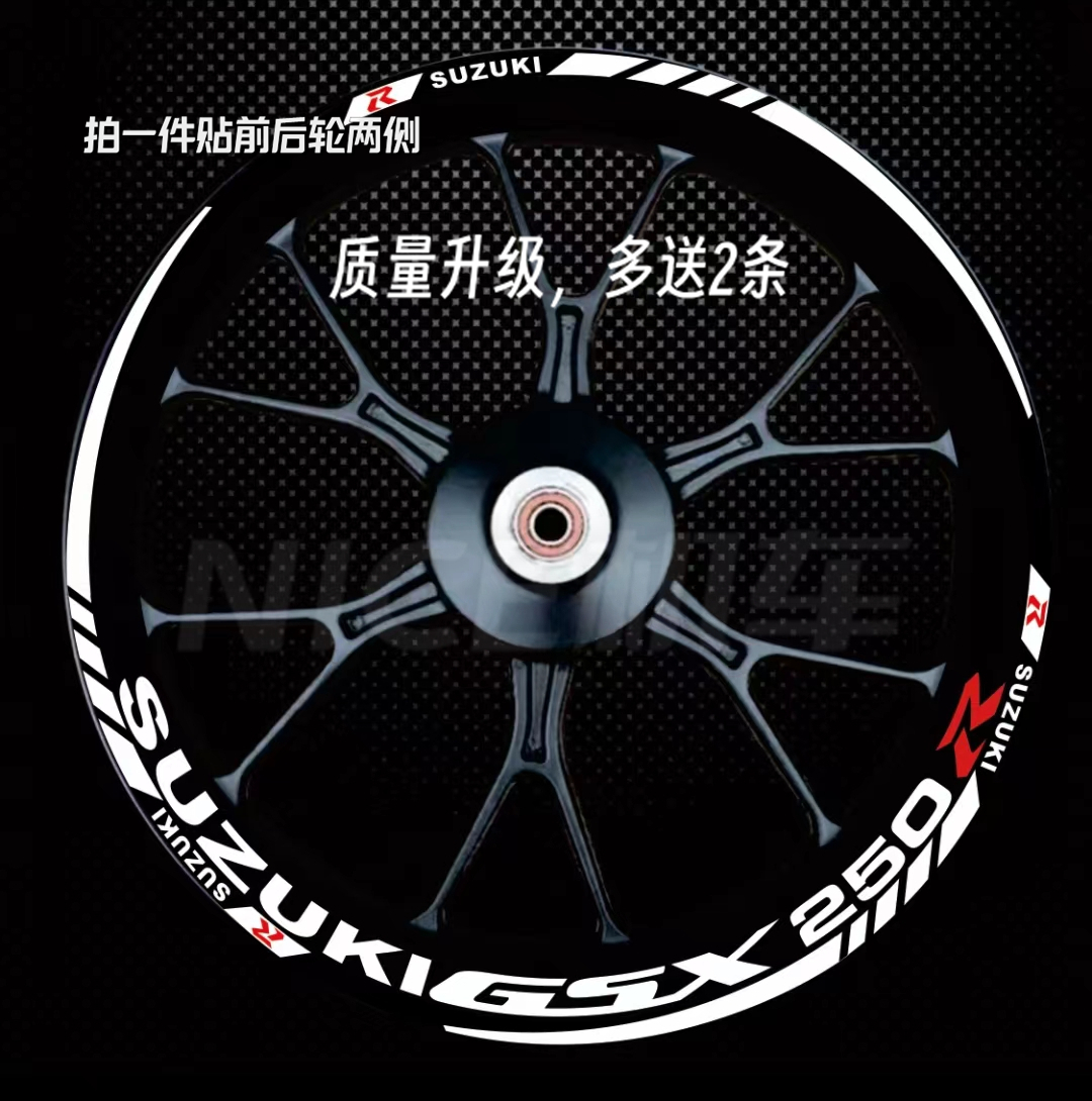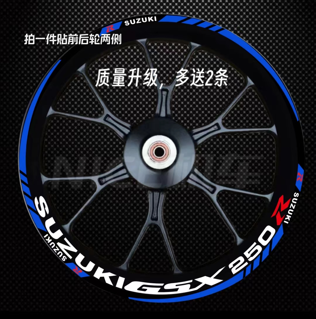 新款铃木摩托机车GSX250R轮毂改装刀条轮圈钢圈反光防水贴花贴纸