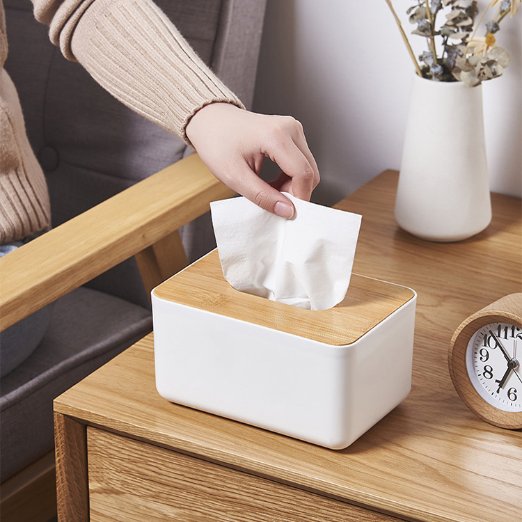 日式天然竹木盖纸巾盒