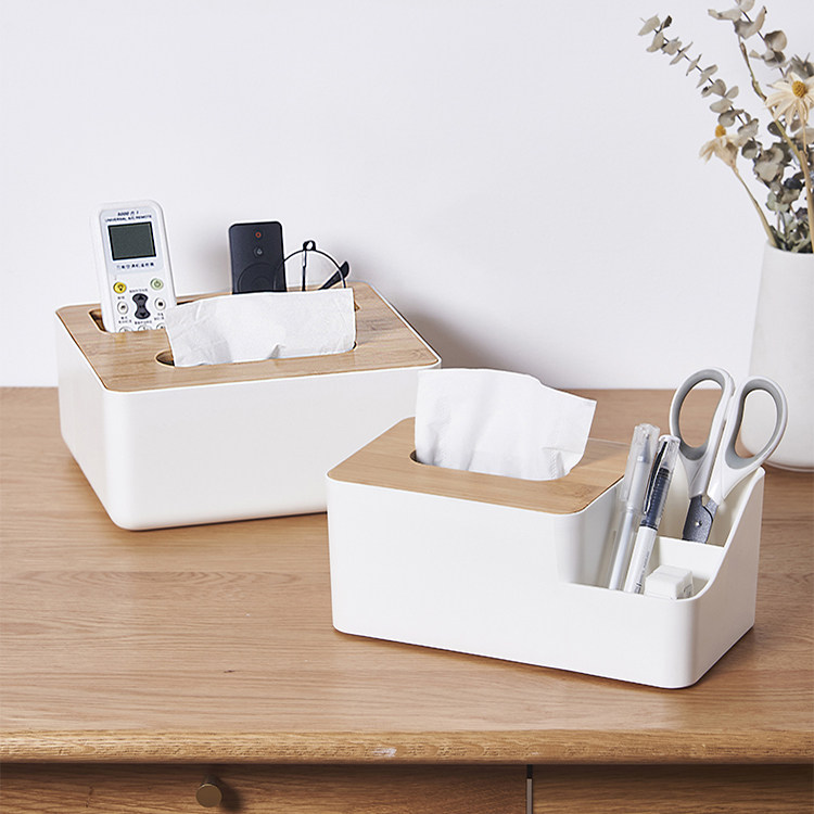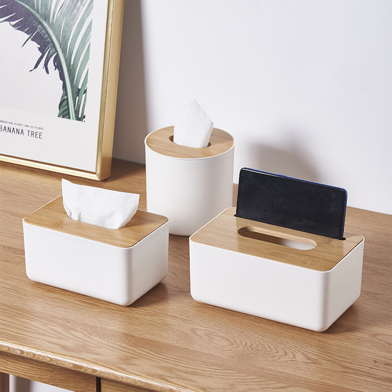 竹木盖纸巾盒多功能放遥控器抽纸收纳一体日式简约木盖桌面卷纸筒